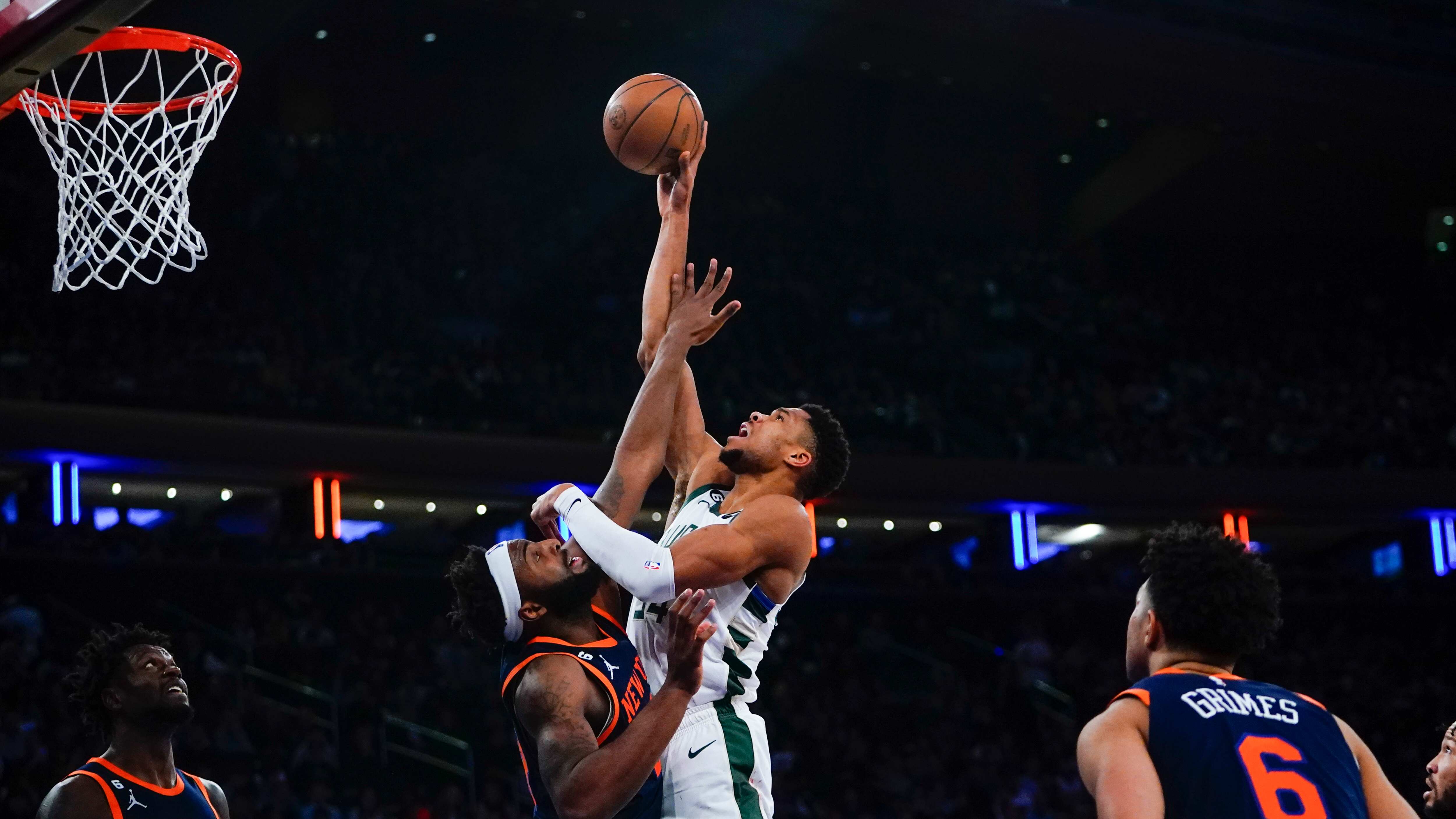 Lopez atinó un tiro de tres para desempatar tras estar 97-97 antes de que Jrue Holiday —quien fue enviado a la banca tras cometer tres faltas en cuatro minutos y medio— atinó cinco puntos seguidos para Milwaukee antes de que los Bucks cerraran el juego en la línea de tiros libres para poner fin a la racha de cuatro victorias de los Knicks.