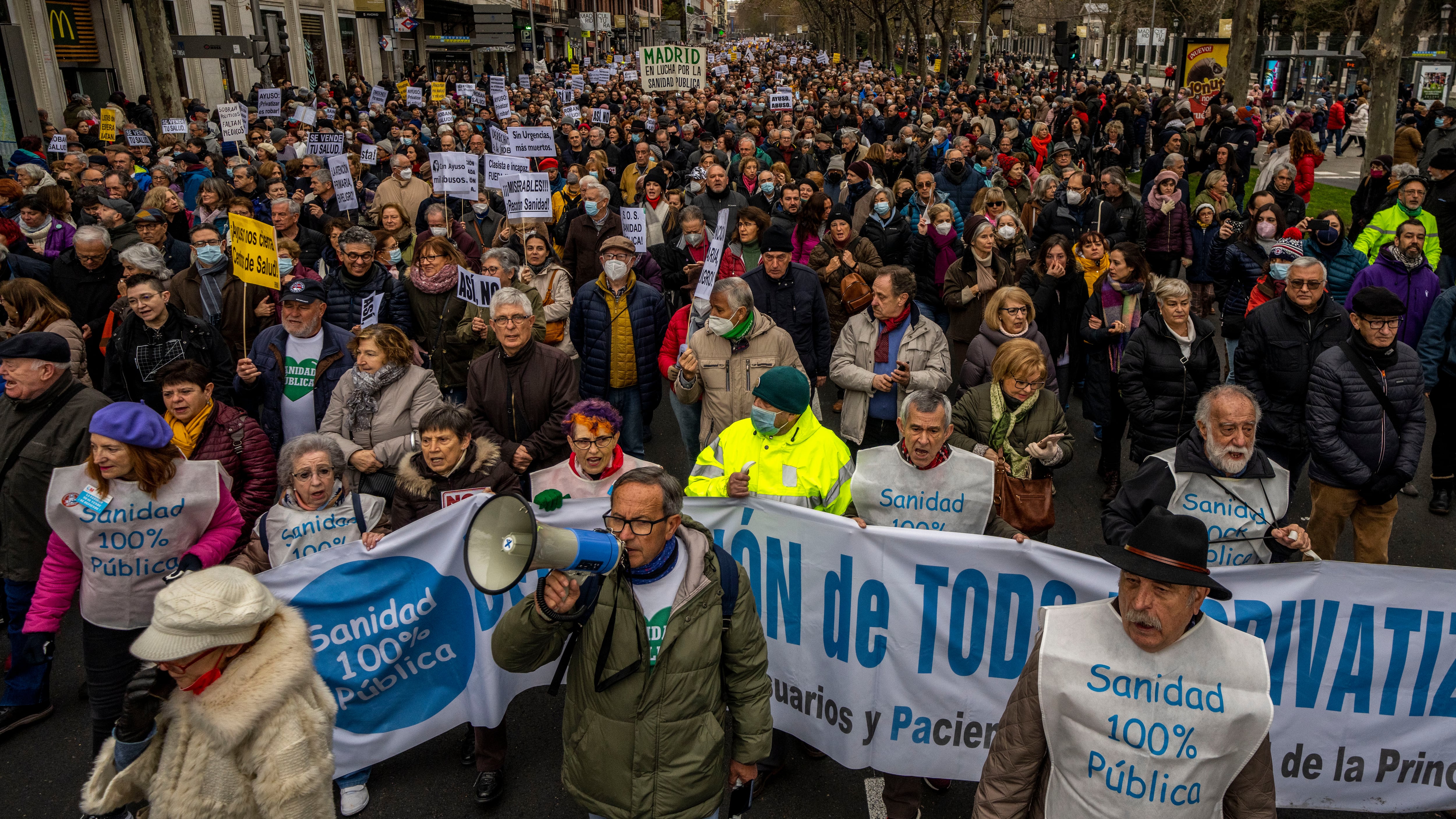 Los sindicatos señalaron que Madrid gasta la menor cantidad per cápita en cuidado médico que cualquier otra región española, pese a tener el mayor ingreso per cápita. Sostienen que por cada 2 euros gastados en atención médica en Madrid, uno termina en el sector privado.