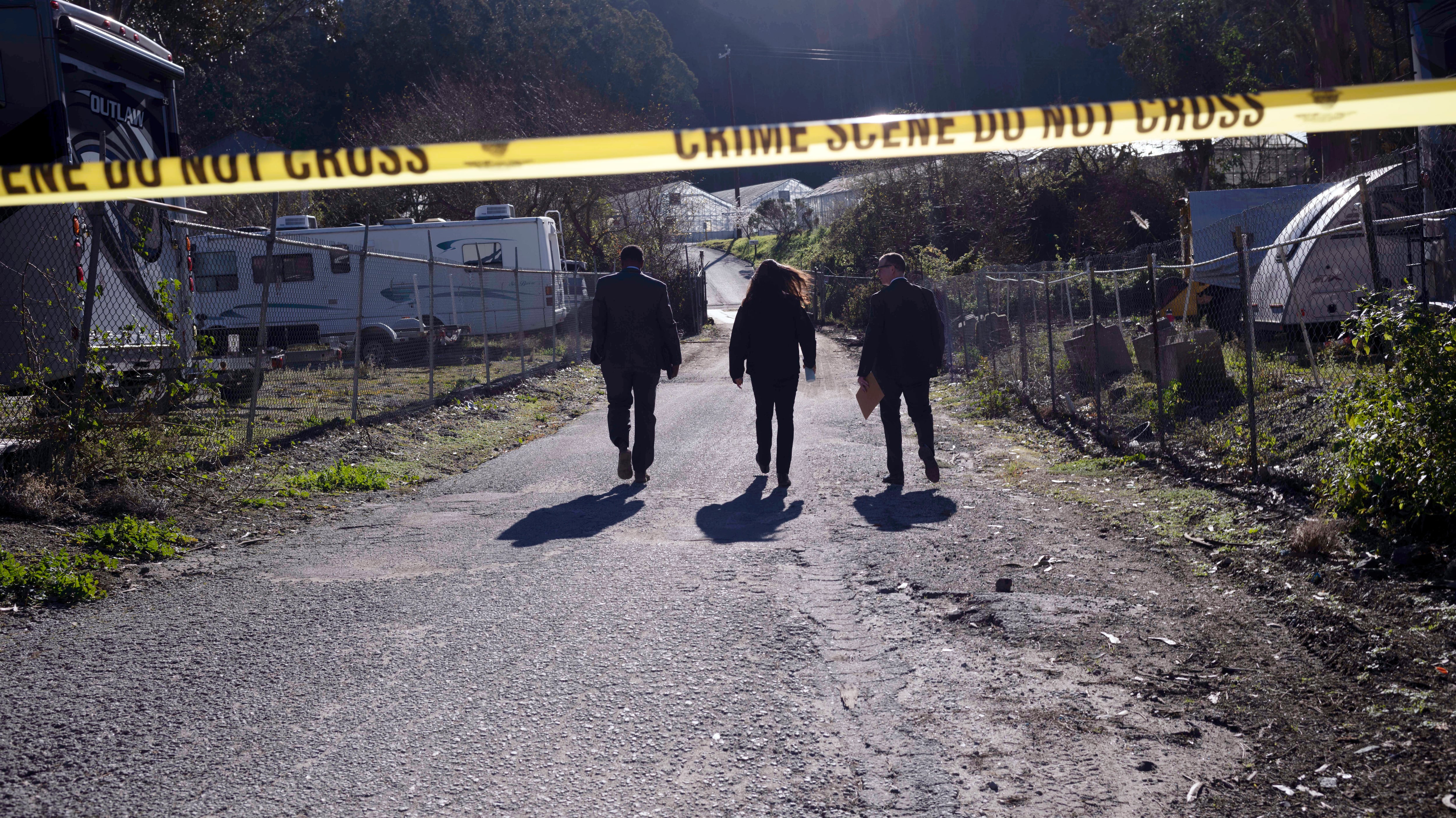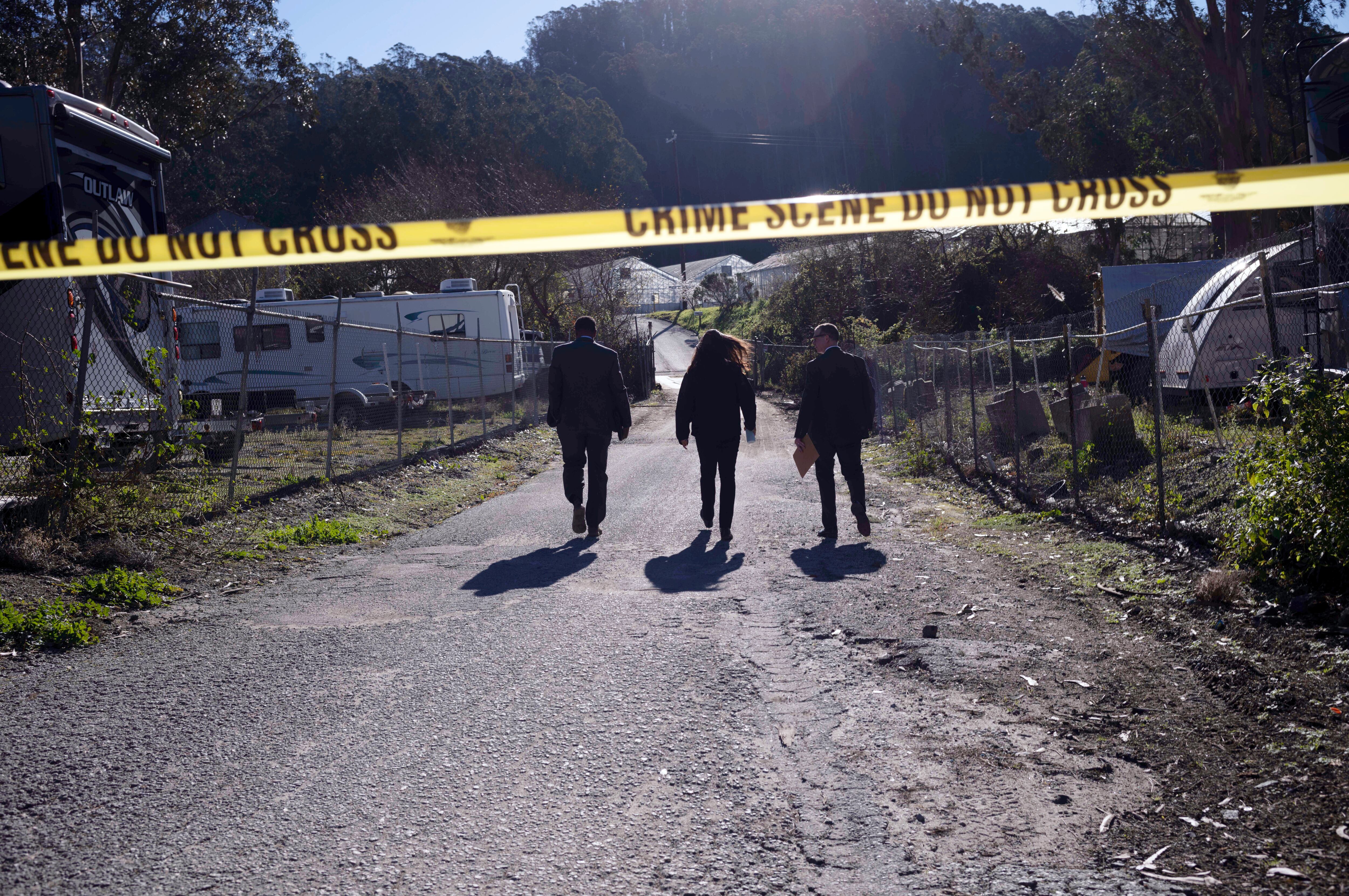 Agentes del FBI caminan el martes 24 de enero de 2023 hacia el sitio donde se perpetró un tiroteo en una granja de hongos en Half Moon Bay, California. (AP Foto/Aaron Kehoe) AP (Aaron Kehoe/AP)