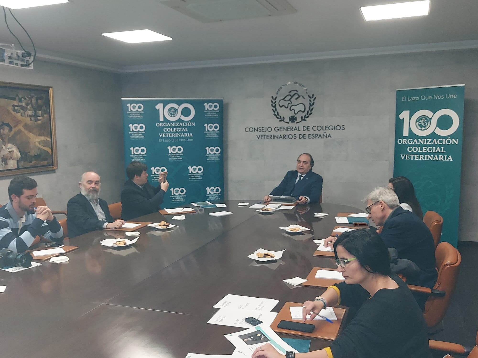 Durante el acto, ha sido presentada la imagen conmemorativa del centenario, que lleva el lema 'Un Lazo Que Nos Une', acompañado por la cifra 100 en tonos verdes y los ceros --con el escudo de la profesión dentro del primero-- entrelazados porque para Calvo, la salud animal, la de las personas y la del medioambiente constituyen un "todo único".