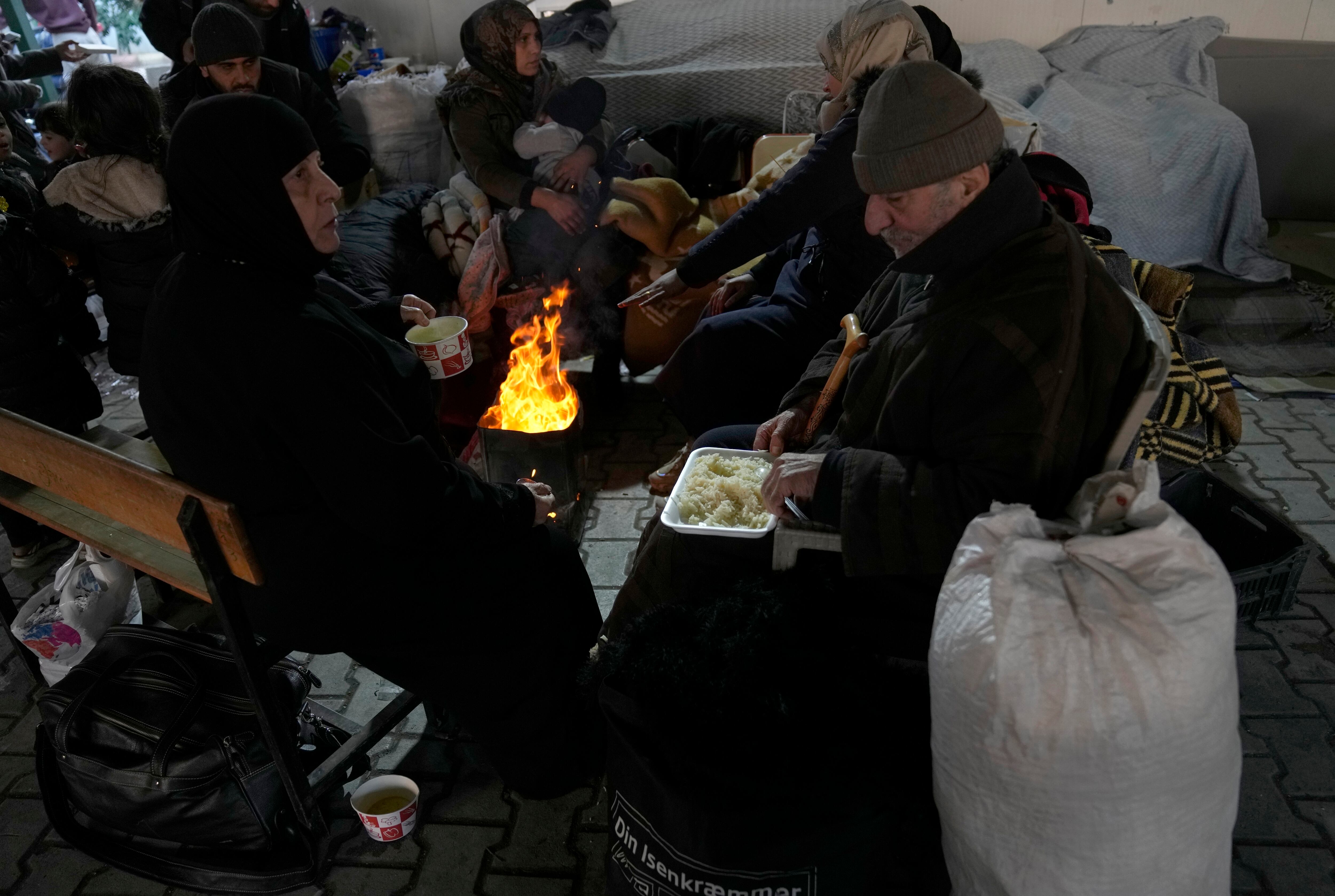 Varios sirios se calientan en torno al fuego el viernes 10 de febrero de 2023 en un refugio en Antakya, en el sureste de Turquía, el cual es operado por Molham, un equipo de voluntarios sirios. (AP Foto/Hussein Malla) AP (Hussein Malla/AP)