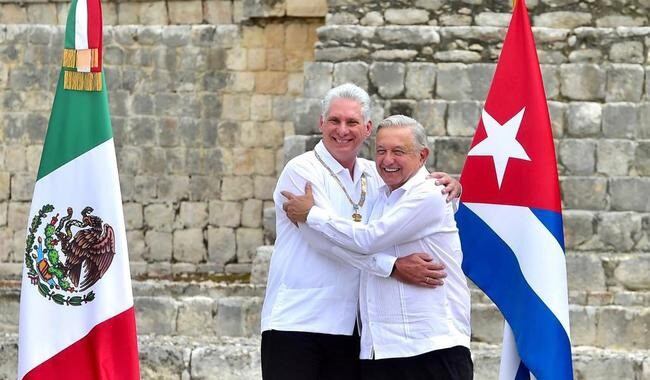 Díaz-Canel llegó el sábado a México en visita oficial en la que López Obrador le ha entregado la condecoración de la Orden del Águila Azteca en una ceremonia en el altar de la gran acrópolis de la zona arqueológica de Edzná, en el estado de Campeche, en el sur del país.