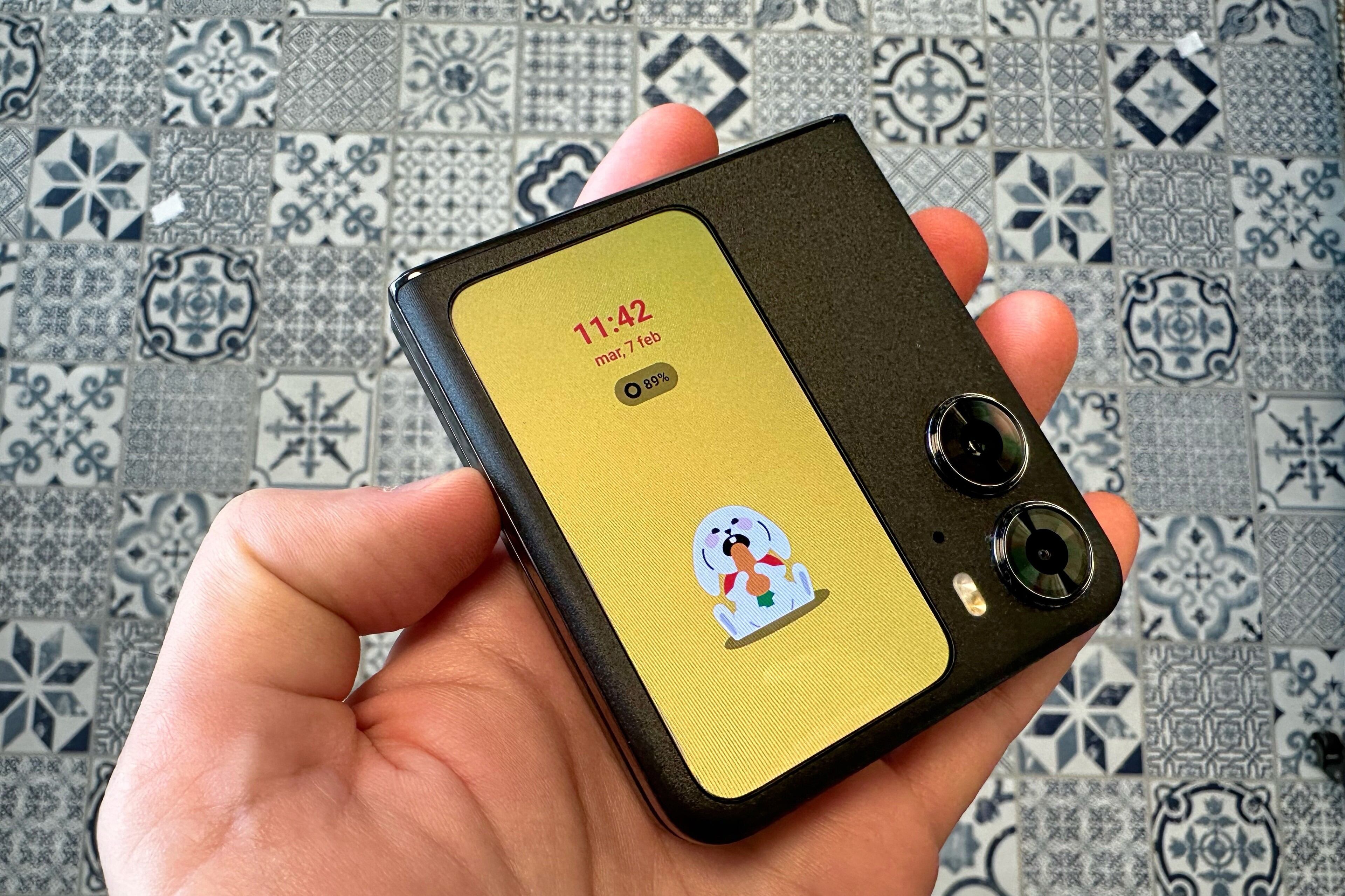 Desde la propia compañía explican que siguen trabajando a nivel de software para dar cada vez más funcionalidades a la pantalla exterior, que también integra una mascota animada y sirve para que el usuario pueda grabarse o hacerse fotos con la cámara principal (de 50 megapíxeles) viéndose en ese panel a tiempo real. Algo que pueden hacer con el móvil cerrado al estilo 'selfie' o apoyando el móvil en cualquier sitio con una apertura de 90 grados.