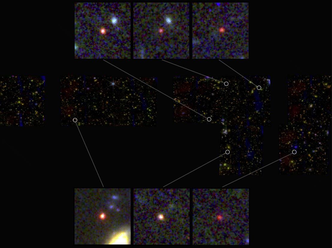 Nelson estaba observando una sección de una imagen del tamaño de un sello de correos cuando vio algo extraño: unos "puntos borrosos" de luz que parecían demasiado brillantes para ser reales. "Eran muy rojos y brillantes --asegura Nelson--. No esperábamos verlos".