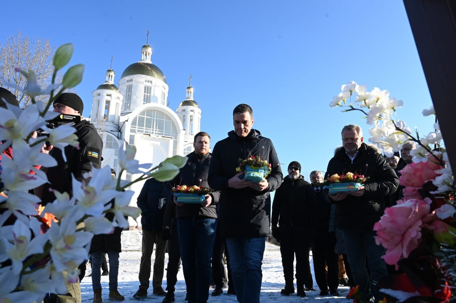 El jefe del Ejecutivo también ha realizado una ofrenda floral a los caídos en la guerra, según recogen las imágenes. Según la agenda prevista, a continuación se reunirá con el presidente ucraniano, Volodimir Zelenski y después ambos mandatarios comparecerán ante los medios de comunicación.