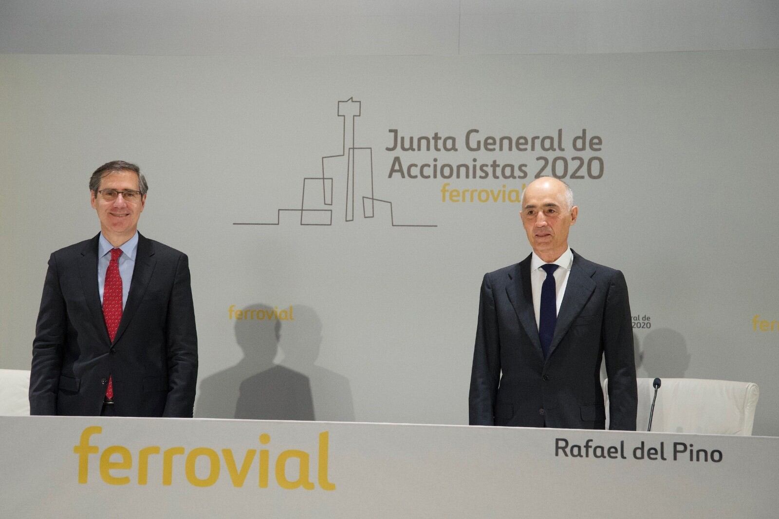 Archivo - El presidente de Ferrovial, Rafael del Pino, y el consejero delegado del grupo, Ignanio Madridejos, ante la junta de accionistas del grupo, celebrada de forma telemática FERROVIAL - Archivo