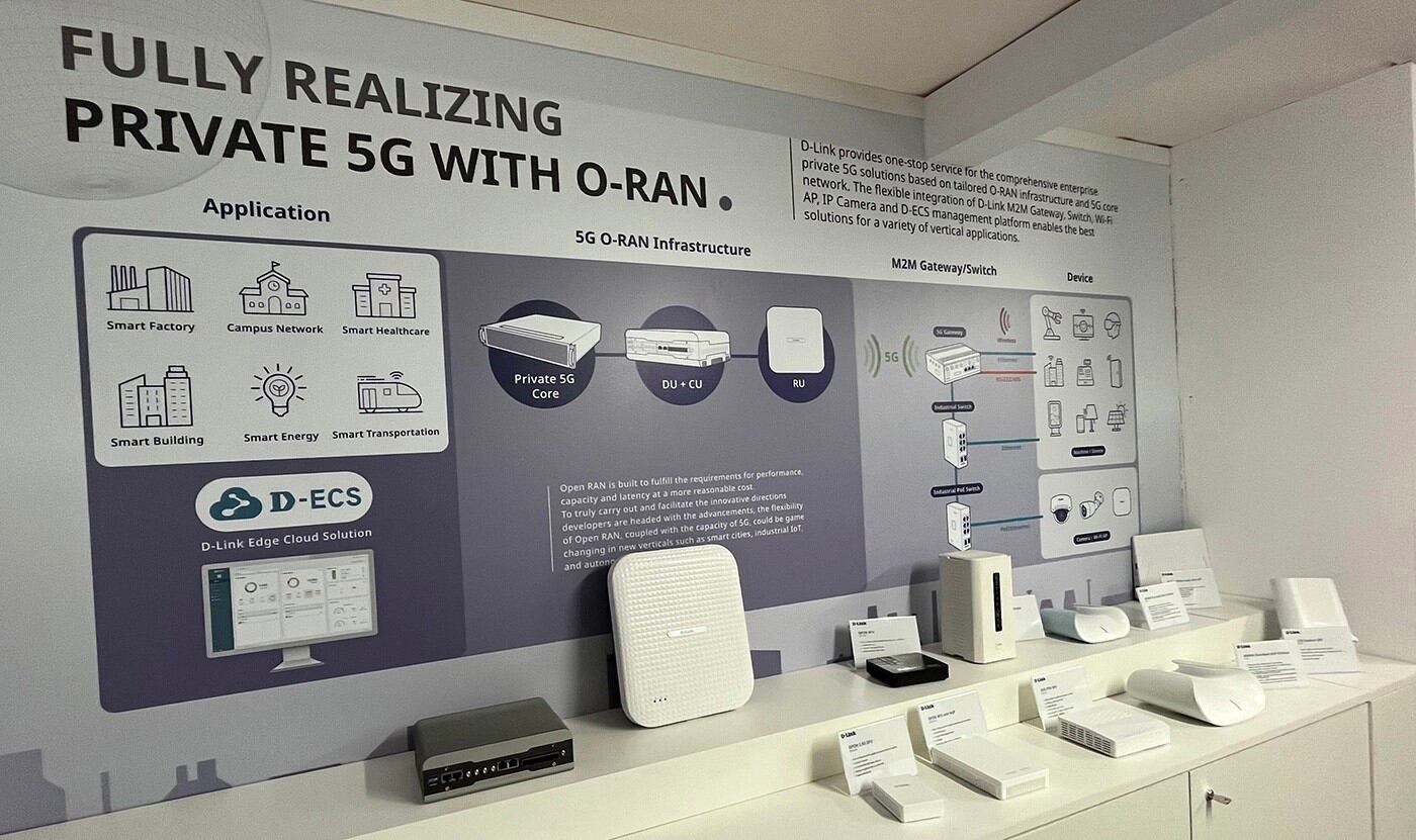 D-Link ha presentado una nueva línea de soluciones 5G O-RAN para crear redes 5G privadas a nivel empresarial, entre las que se encuentra una solución que se basa en esta infraestructura a medida y despliega un dispositivo de unidad de distribución (DU), una unidad centralizada (CU) y puntos de acceso RU.