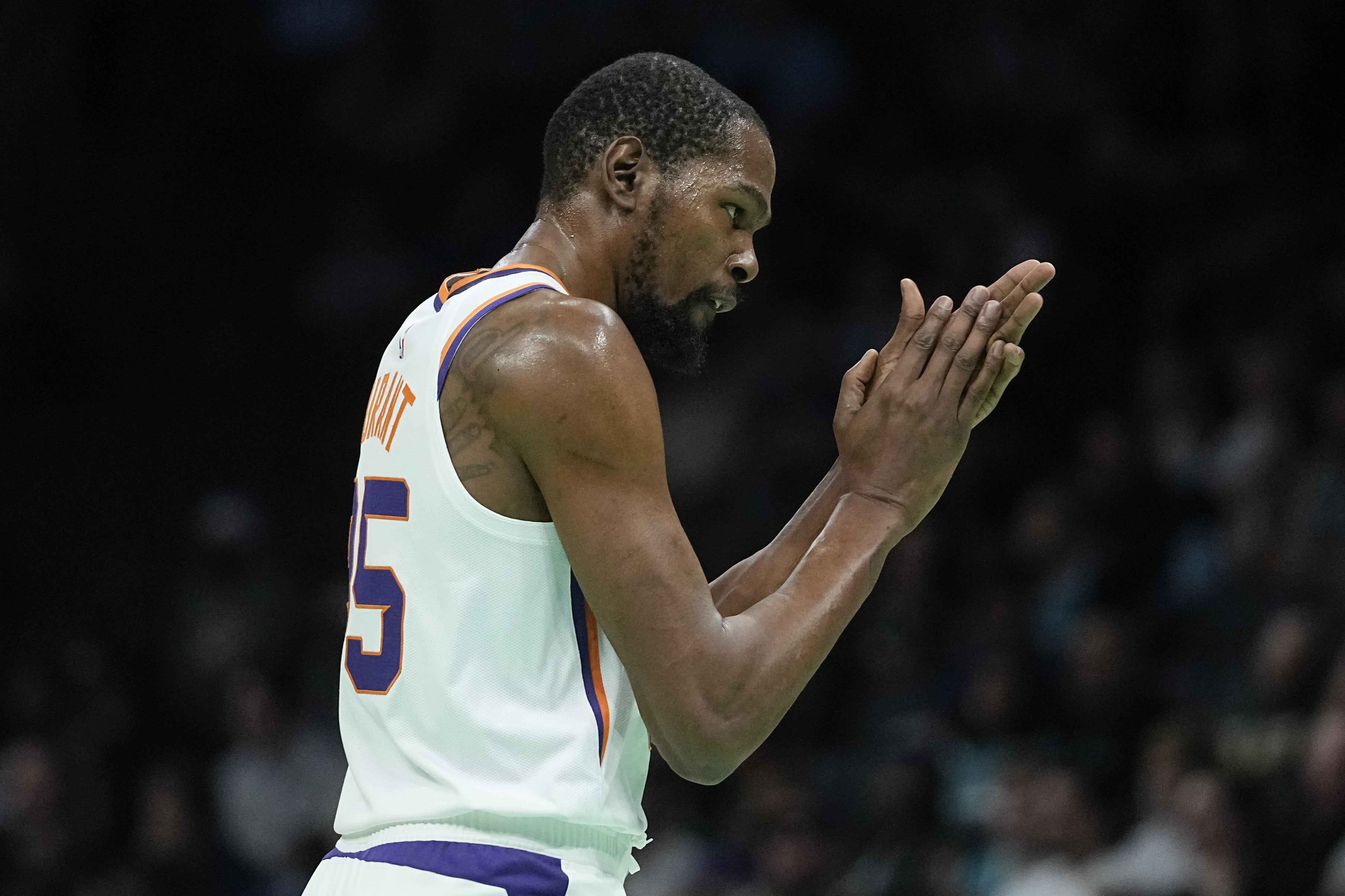 Durant anotó dos triples, una serie de disparos a media distancia y demostró que aún tiene la explosión para llegar al canasto con una bandeja de mano izquierda para su primer enceste con los Suns. También aportó a la defensiva con dos bloqueos sobre el pívot novato de los Hornets, Mark Williams, en los primeros cinco minutos.
