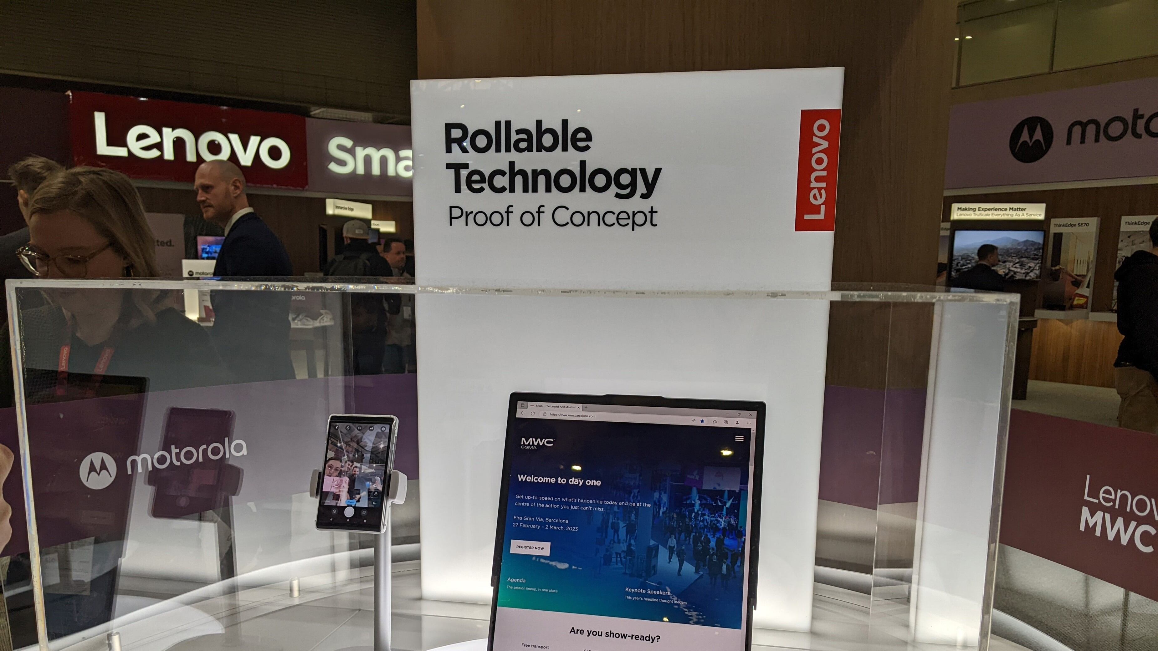 Lenovo ha compartido dos prototipo con tecnología de pantalla enrollable: un ordenador portátil y un teléfono móvil de la marca motorola, que ha expuesto en su 'stand' de Mobile World Congress.