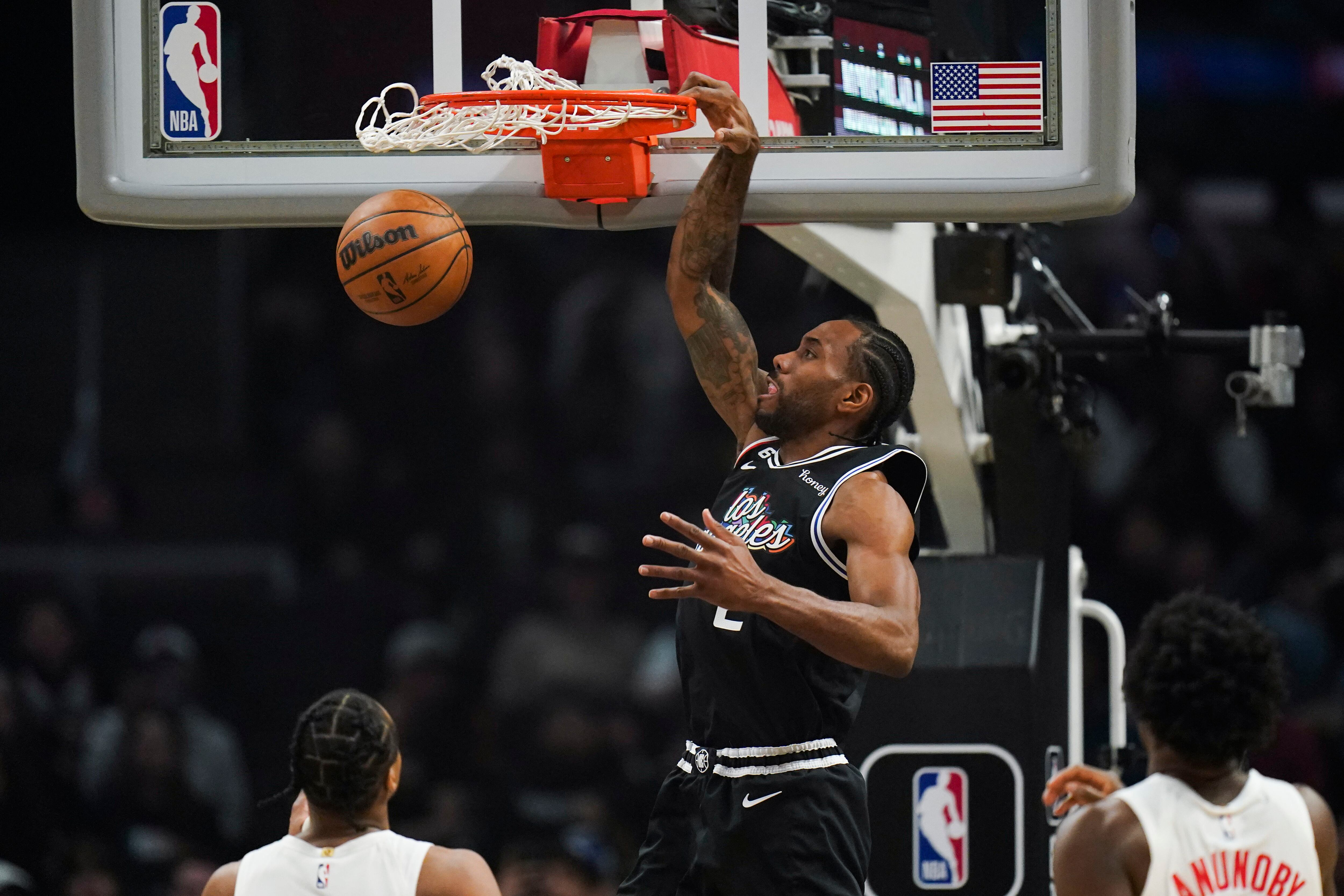 Leonard también batió su récord de temporada con 12 rebotes contra el equipo al que ayudó a llevar a un título de la NBA en 2019.
