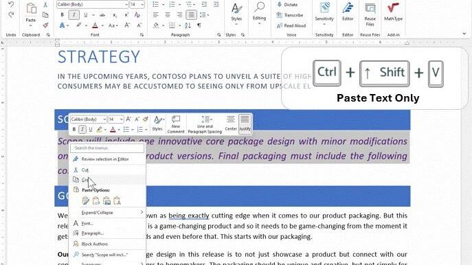 Microsoft ha introducido una nueva opción que recibe el nombre de 'Mantener solo texto' o 'Pegar como texto sin formato', se corresponde con el atajo de las teclas Ctrl + Mayús + V para Windows y CMD + Mayús + V en Mac.