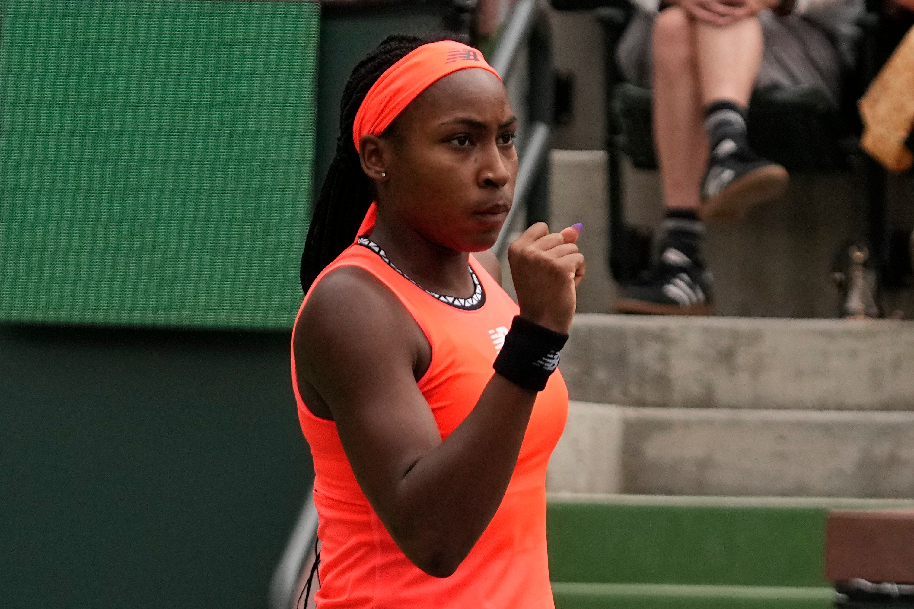 Abajo 2-4, Gauff peleó para recuperarse y salvó tres puntos de quiebre a 4 antes de cerrar el duelo en el siguiente game.