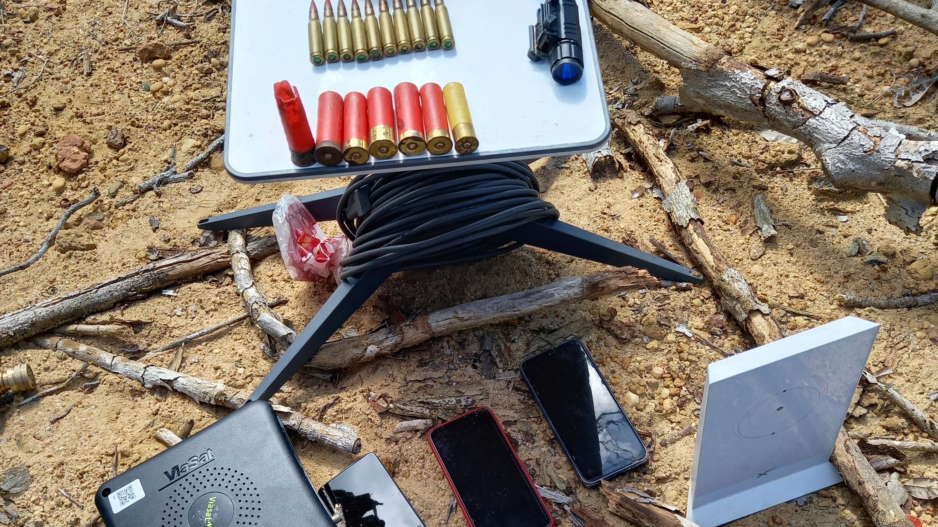 También incautaron 600 gramos (21 onzas) de mercurio, 15 gramos (0,5 onzas) de oro, 508 cartuchos de munición de distintos calibres y documentos personales. Destruyeron 3.250 litros (848 galones) de combustible, cuatro barcazas de minería, 12 generadores, 23 unidades de alojamiento y almacenaje y siete motores fueraborda.