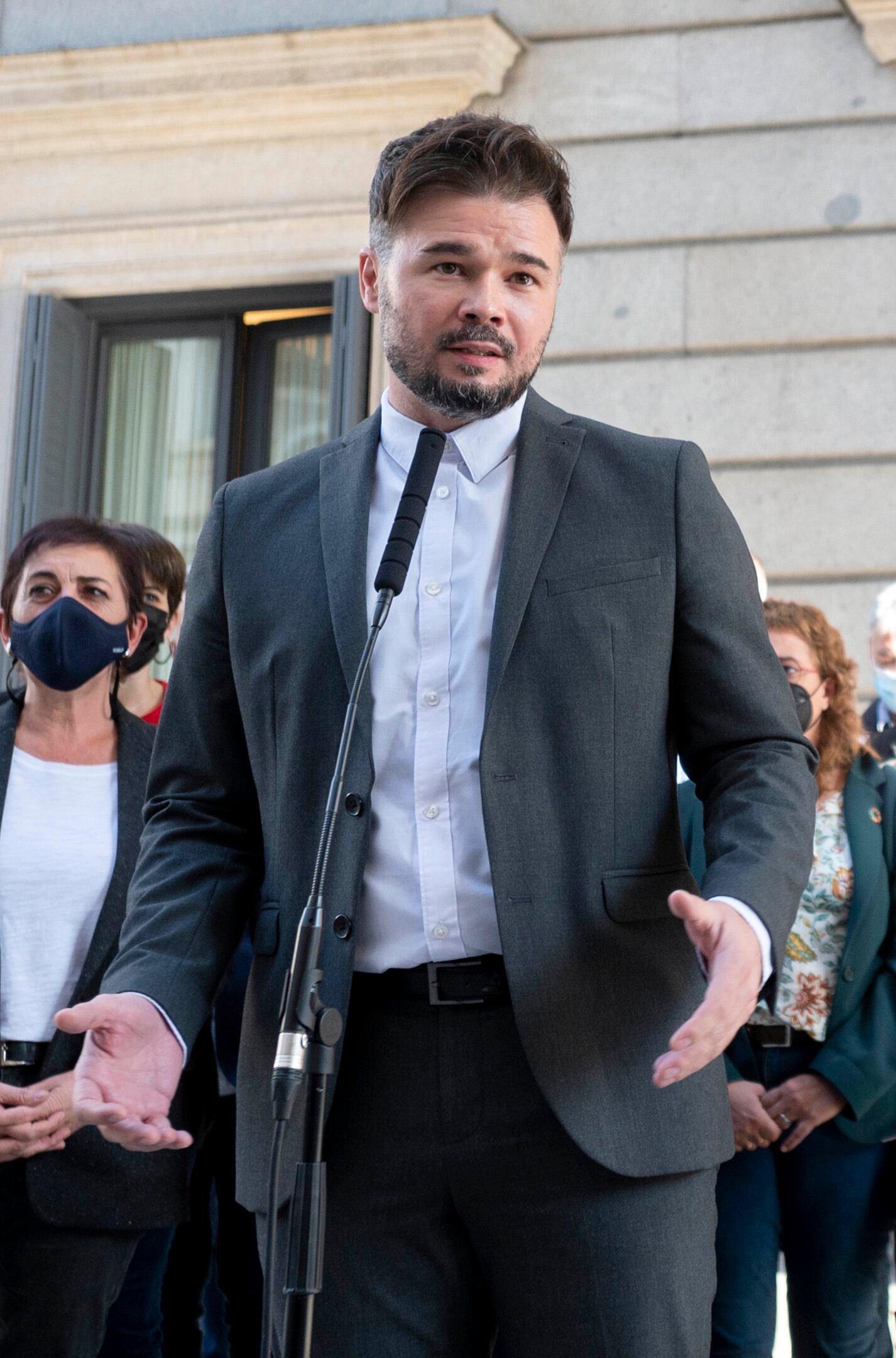 Archivo - El portavoz parlamentario de ERC, Gabriel Rufián, realiza una declaración institucional acompañado de otros miembros de grupos independentistas tras abandonar una sesión plenaria del Congreso de los Diputados, a 11 de noviembre de 2021, en M Alberto Ortega - Europa Press - Archivo (Alberto Ortega - Europa Press/Europa Press)