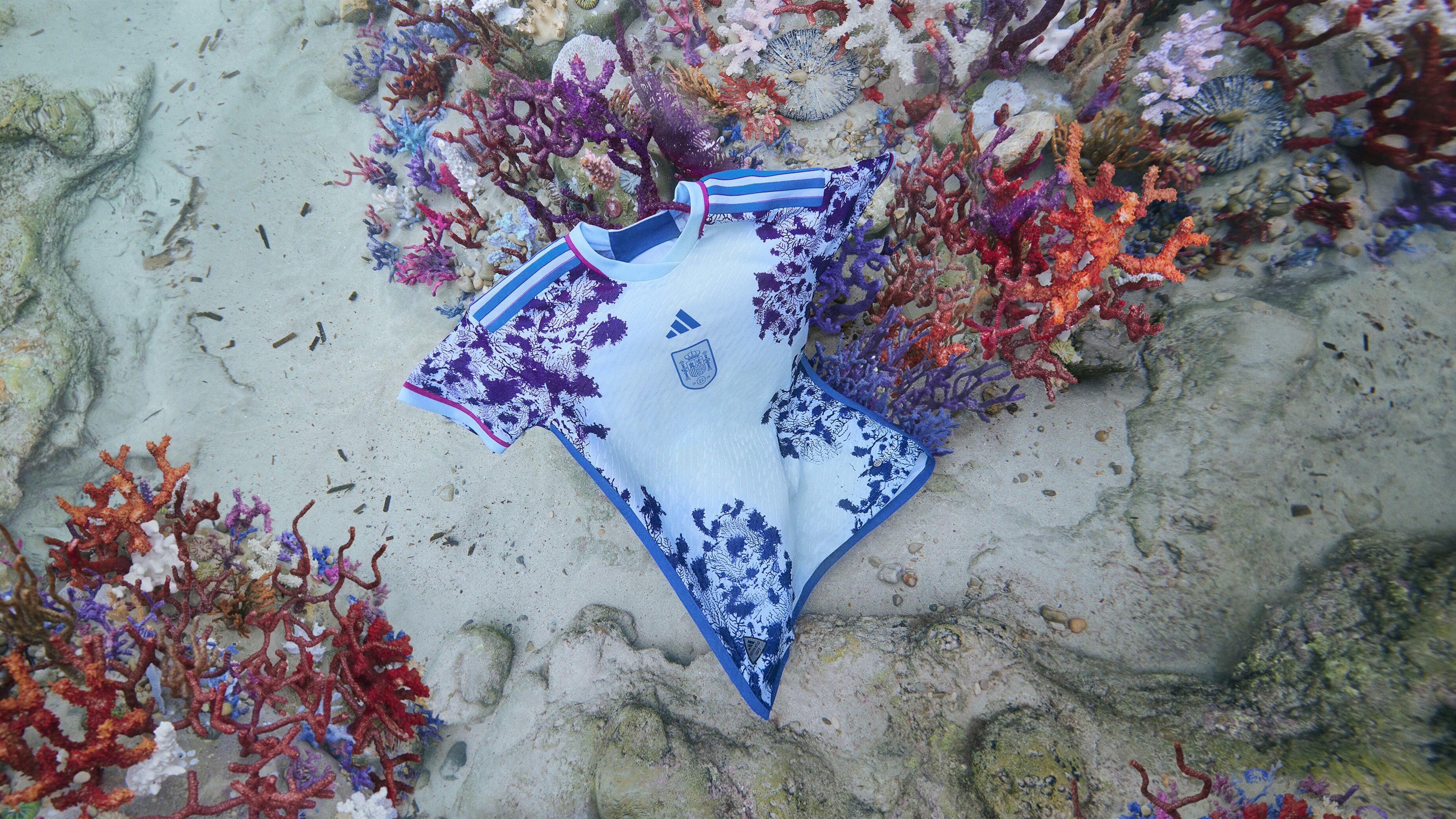 En cuanto a la camiseta de la segunda equipación de la selección española, se inspira en los "preciosos arrecifes de coral" que cubren la extensa línea de costa del país, una singularidad que comparte con los célebres arrecifes de coral de los países anfitriones del torneo, Australia y Nueva Zelanda.
