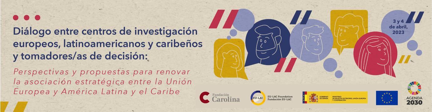 Organizado por la Fundación EU-LAC y la Fundación Carolina, el "Diálogo entre centros de investigación europeos, latinoamericanos y caribeños y tomadores/as de decisión: Perspectivas y propuestas para renovar la asociación estratégica entre la Unión Europea y América Latina y el Caribe", tendrá lugar entre el 3 y el 4 de abril en el Ministerio de