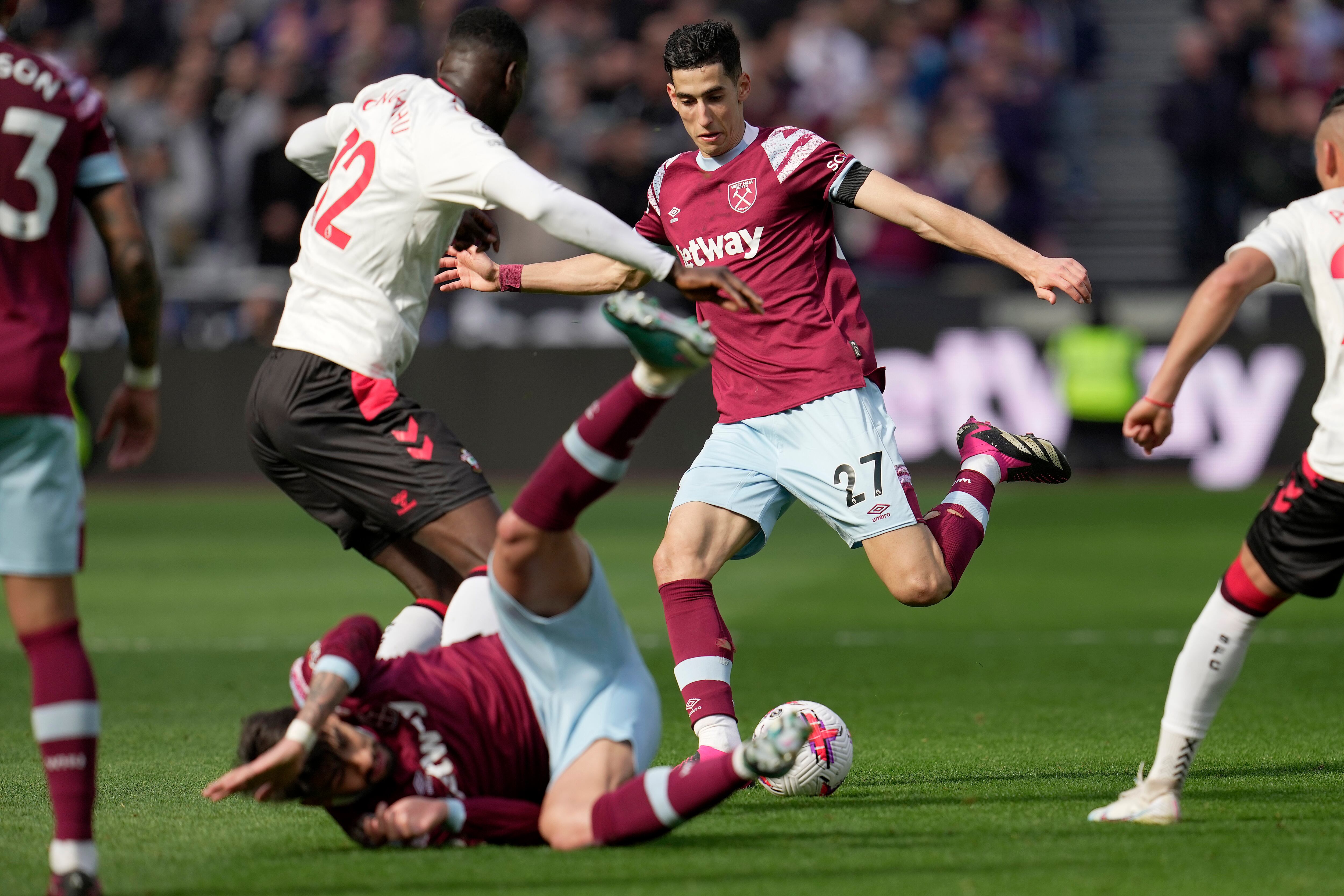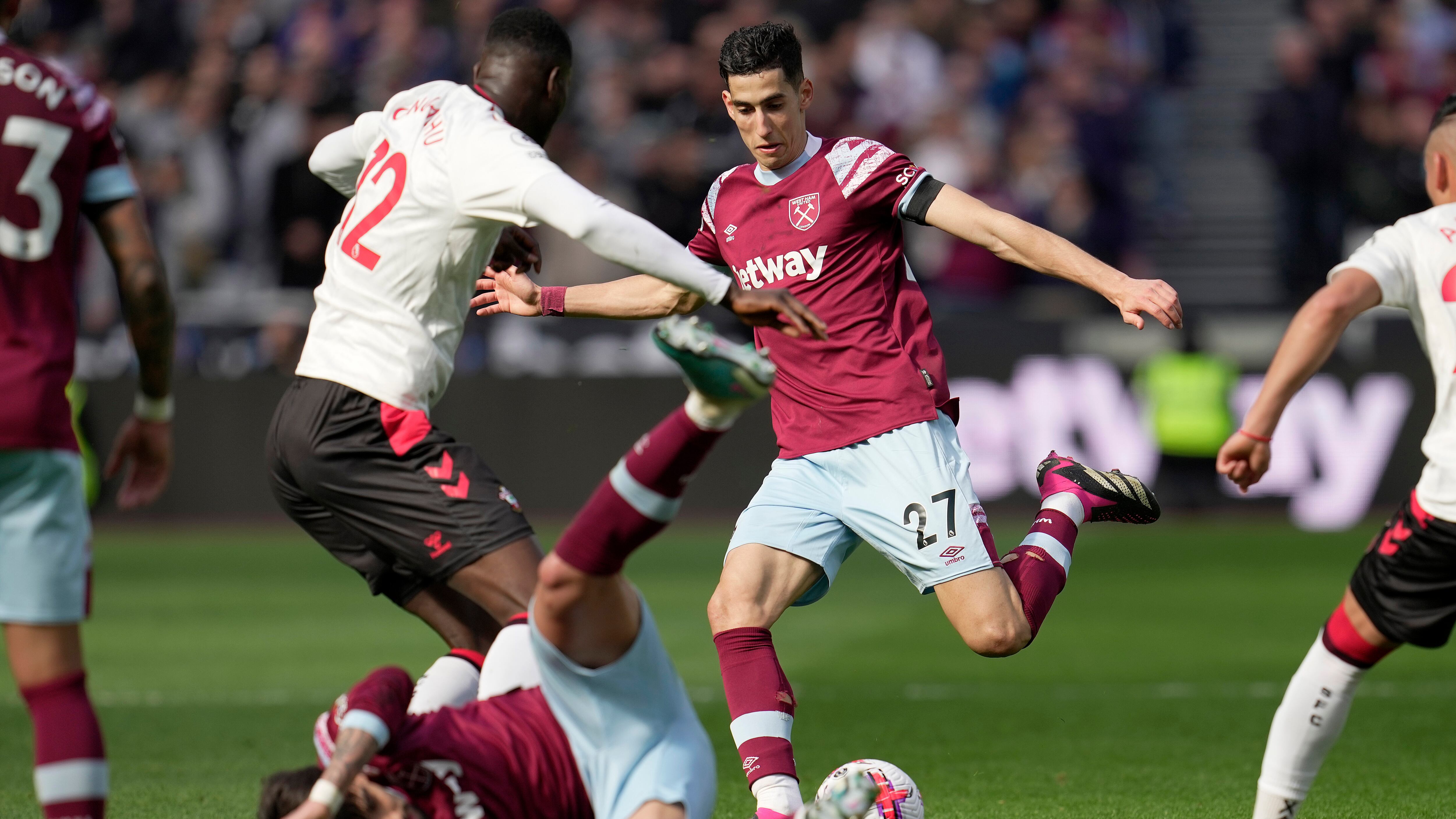El defensa marroquí Nayef Aguerd anotó con un cabezazo a los 25 minutos y el West Ham pasó del 19no al 14to puesto y dejó al colero Southampton a tres puntos de la permanencia en una cerrada batalla por evitar el descenso.