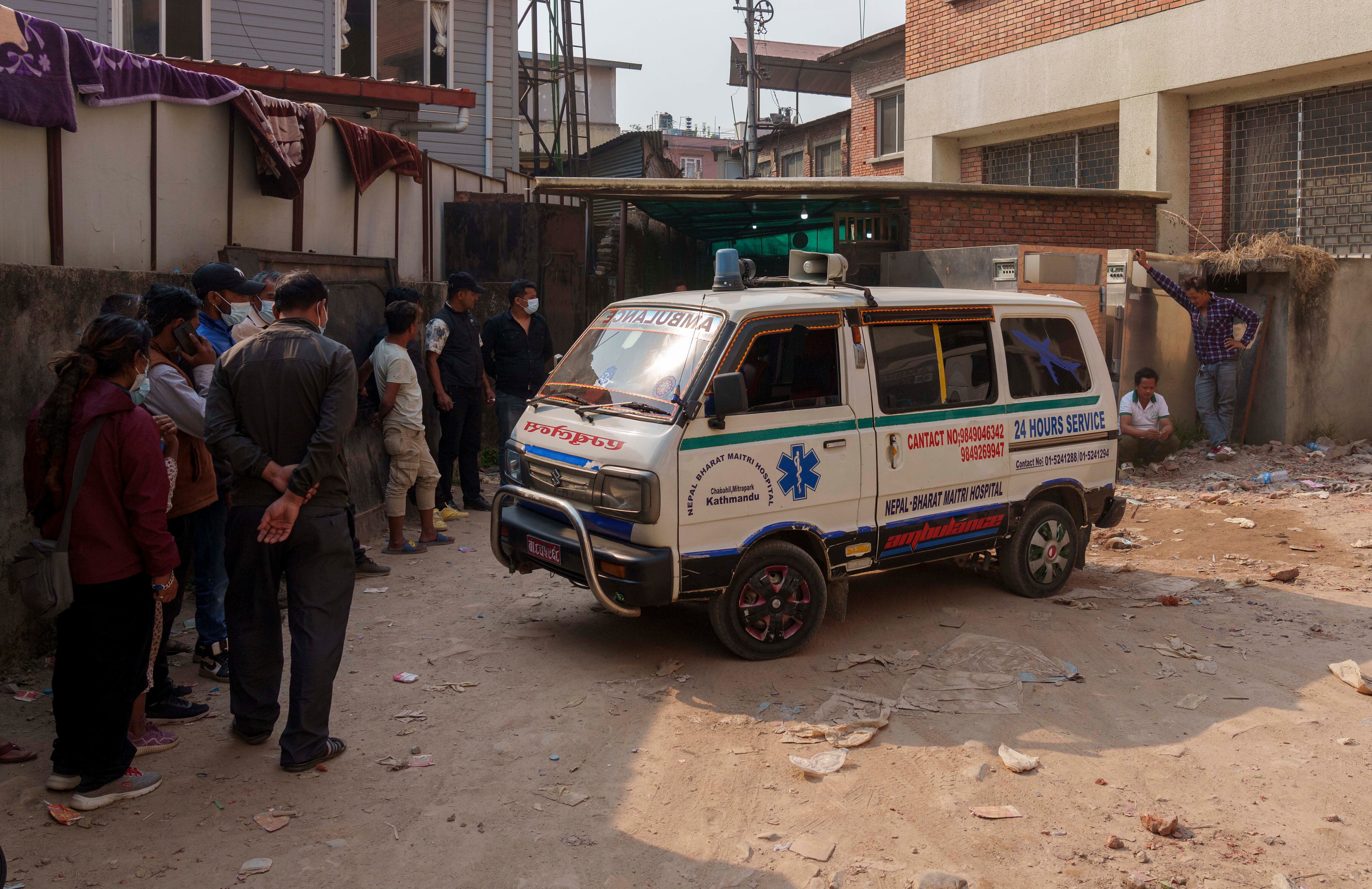 La llevaron a un hospital en Katmandú, donde caminó desde la ambulancia hasta el edificio con ayuda de una enfermera.