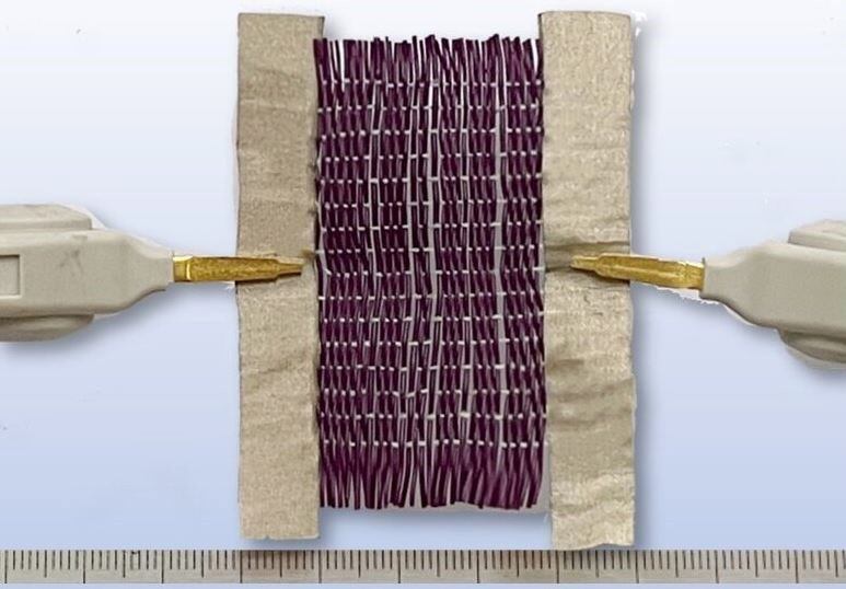 Los investigadores crearon un dispositivo similar a un telar tradicional para tejer la tela inteligente. El proceso resultante es extremadamente versátil, lo que permite la libertad de diseño y el control a macroescala de las propiedades del tejido.