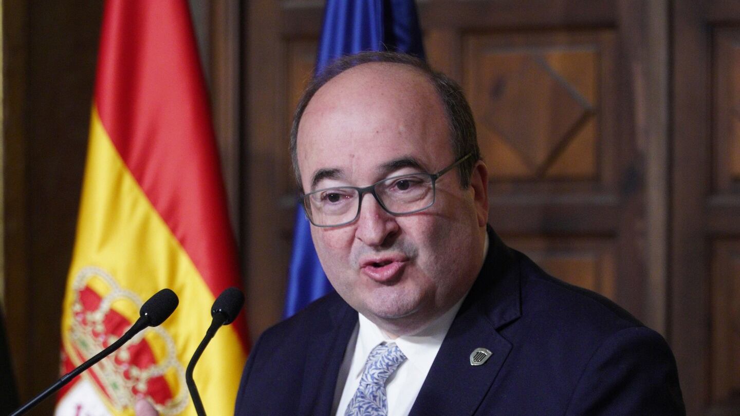El ministro de Cultura y Deporte, Miquel Iceta, ofrece una rueda de prensa durante su visita al Monasterio de Santa María la Real, Nájera, La Rioja (España). Iceta visita hoy la Escuela de Patrimonio Histórico de Nájera (La Rioja) y el Monasterio de Alberto Ruiz - Europa Press (Alberto Ruiz - Europa Press/Europa Press)