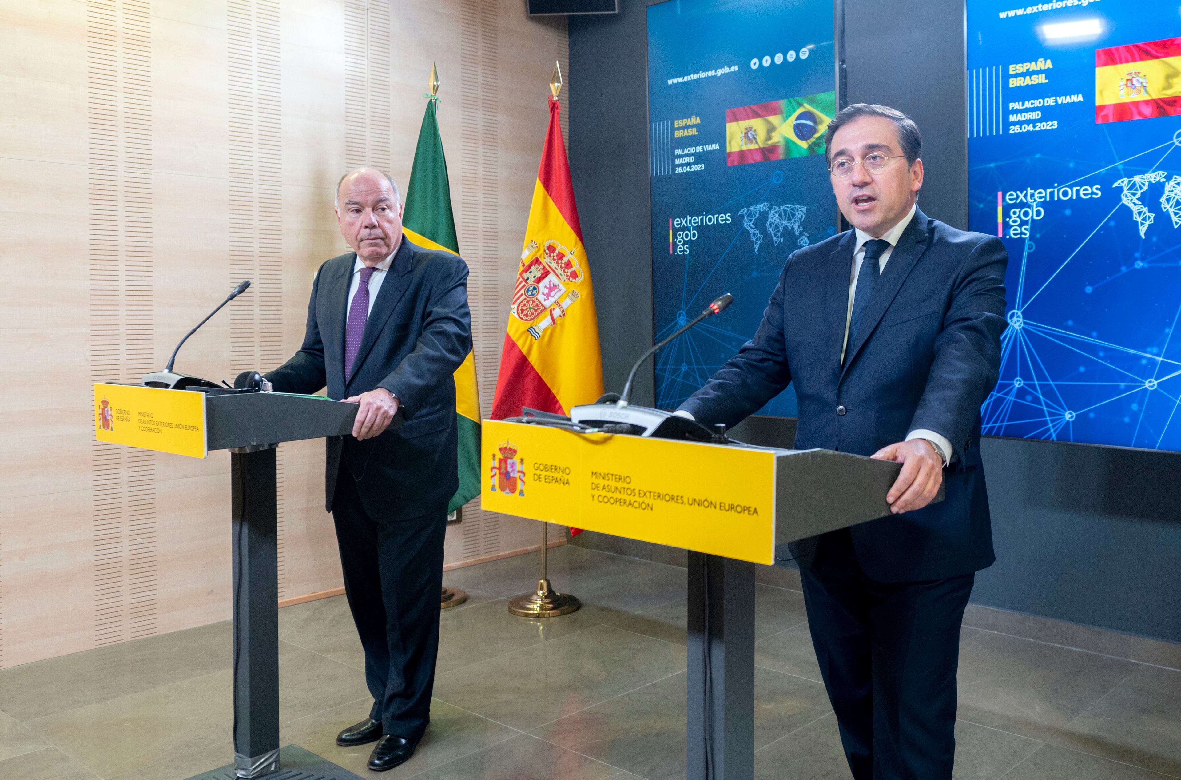 "España es totalmente favorable al avance y la ratificación" de este acuerdo que es "mutuamente beneficioso para la UE y Mercosur", ha sostenido el ministro en la rueda de prensa conjunta con su homólogo brasileño, Mauro Vieira, al ser preguntado por los obstáculos que impiden la entrada en vigor de un acuerdo que quedó cerrado en 2019 tras más de 20 años de negociaciones.