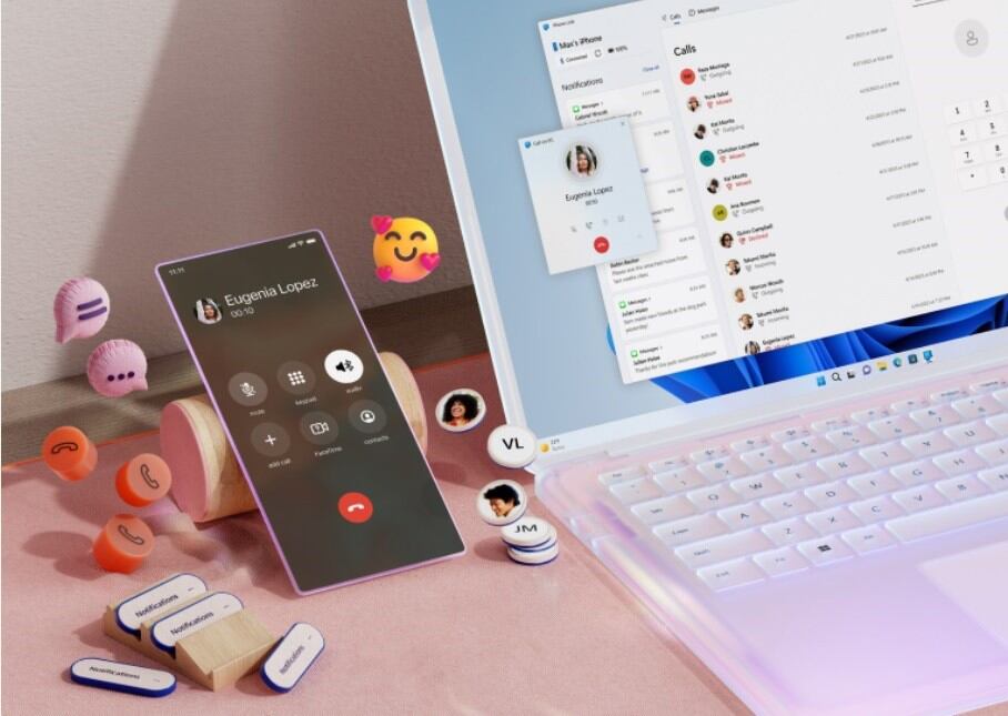 Al vincular un iPhone con un PC, el usuario encontrará que puede realizar llamadas, enviar mensajes y acceder al listado de contactos de su móvil. También llegarán al ordenador las notificaciones y permitirá acceder a la integración con iCloud a través de la app Fotos para Windows 11.