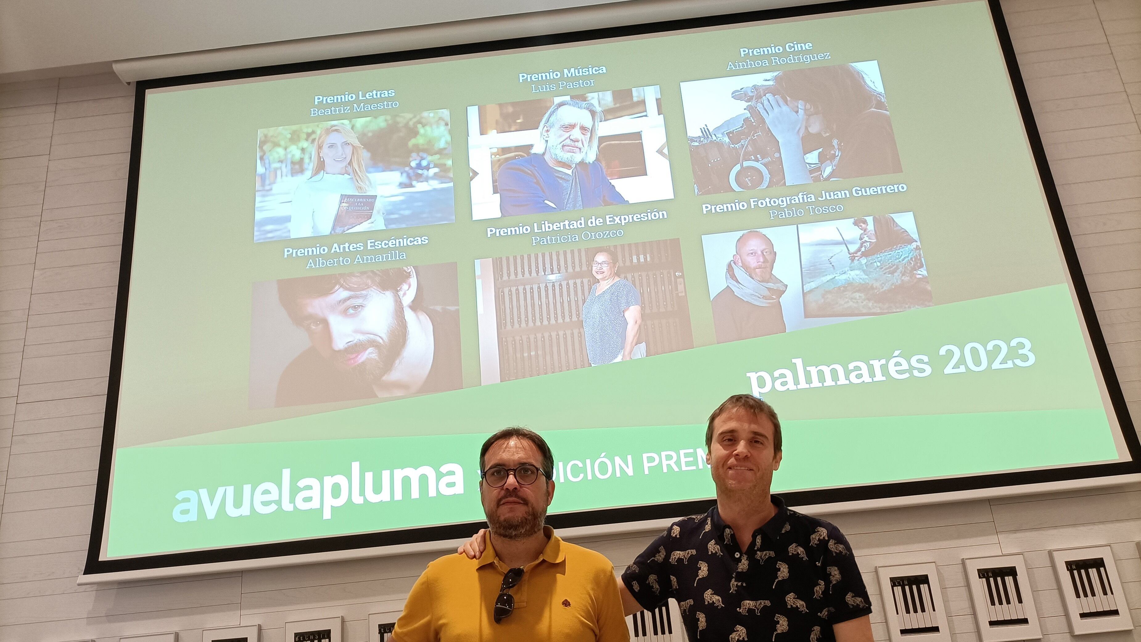Conrado Gómez y Sergio Martínez, presidente y vicepresidente de la Asociación Cultural Avuelapluma, han presentado este miércoles en rueda de prensa el evento, en el Museo Helga de Alvear. Los dos han destacado que los Premios Avuelapluma mantienen su apuesta por la cultura y la libertad de expresión y han asegurado que son "una palmadita en la espalda" a los creadores culturales para que no desfallezcan en su labor creativa.