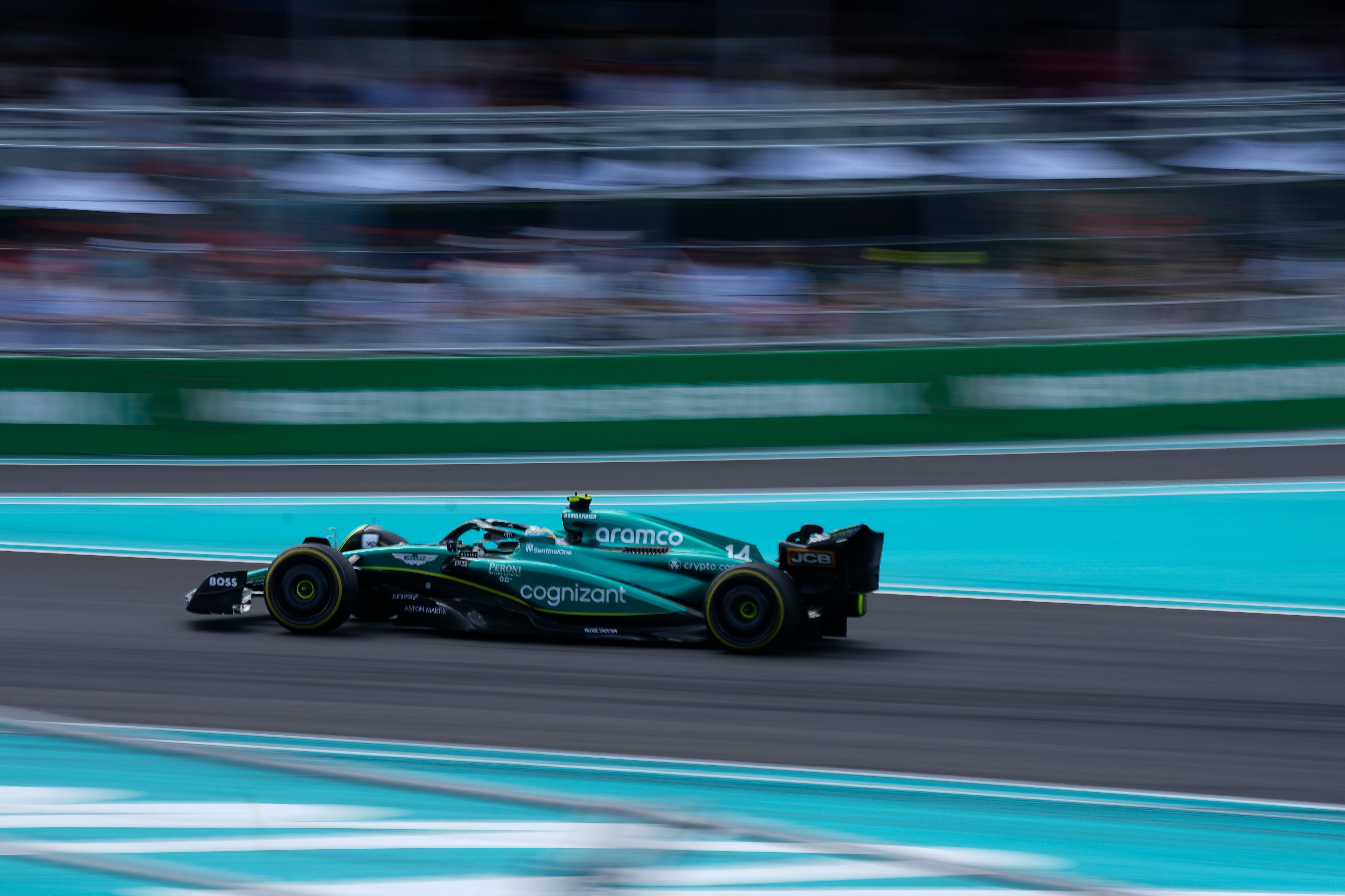 Fernando Alonso al volante de un Aston Martin durante el Gran Premio de Miami, el domingo 7 de mayo de 2023, en Miami Gardens, Florida. (AP Foto/Rebecca Blackwell) AP (Rebecca Blackwell/AP)