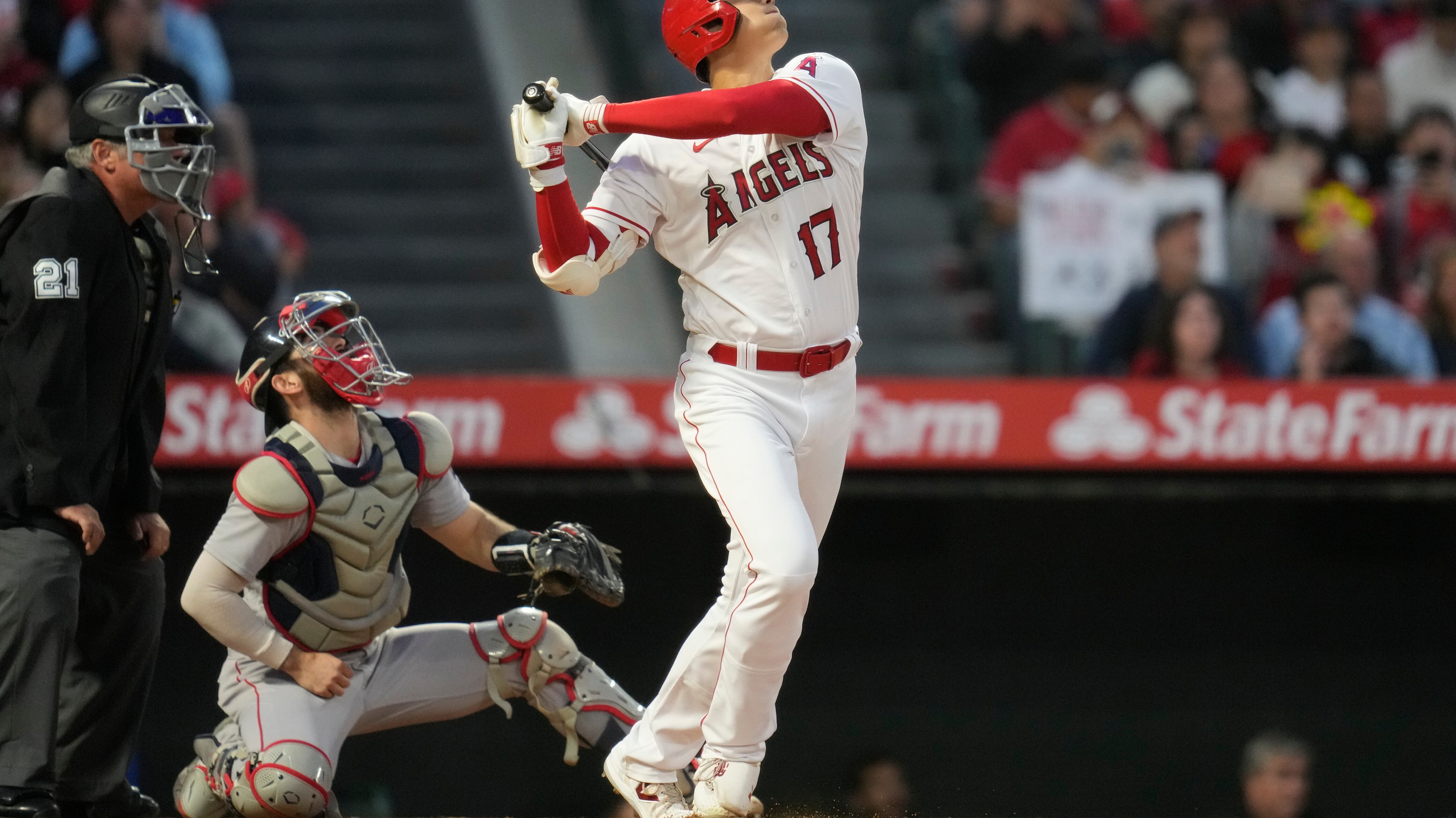 ANAHEIM, California, EE.UU. (AP) — Shohei Ohtani y Mike Trout aportaron jonrón en el mismo juego por 26ta ocasión, y los Angelinos de Los Ángeles hilvanaron su cuarta victoria, al vencer el miércoles 7-3 a los Medias Rojas de Boston, barridos en la serie.