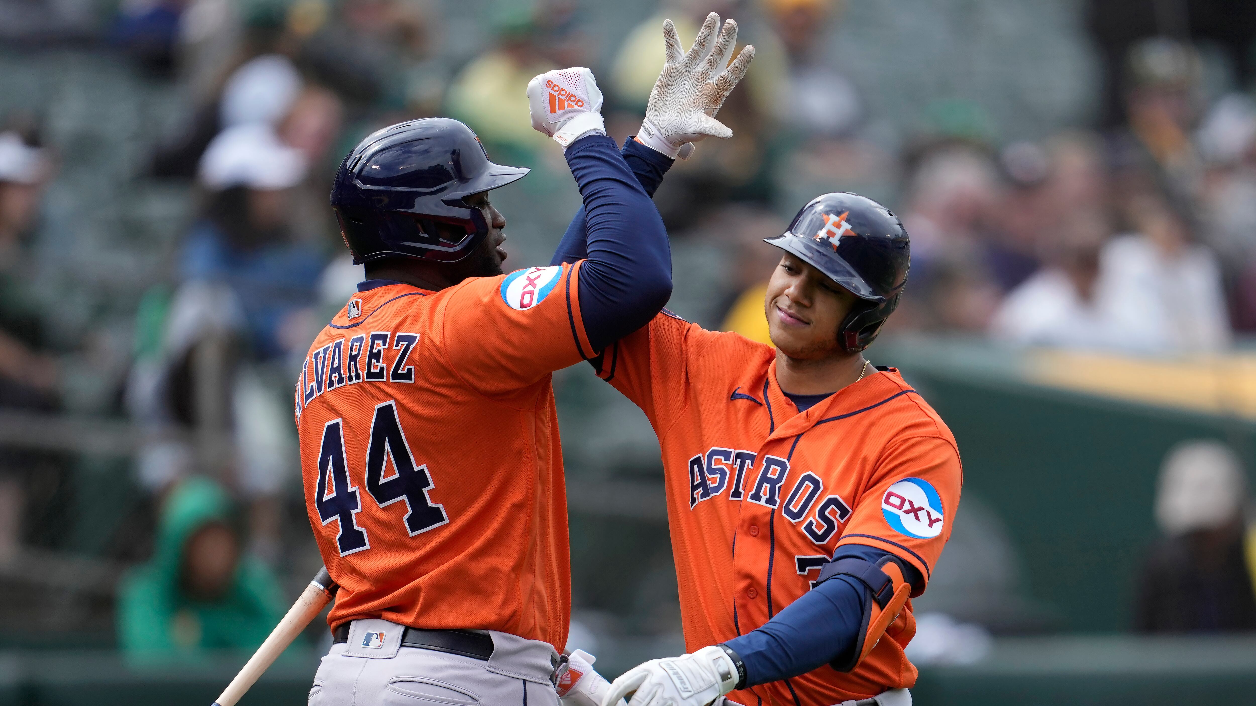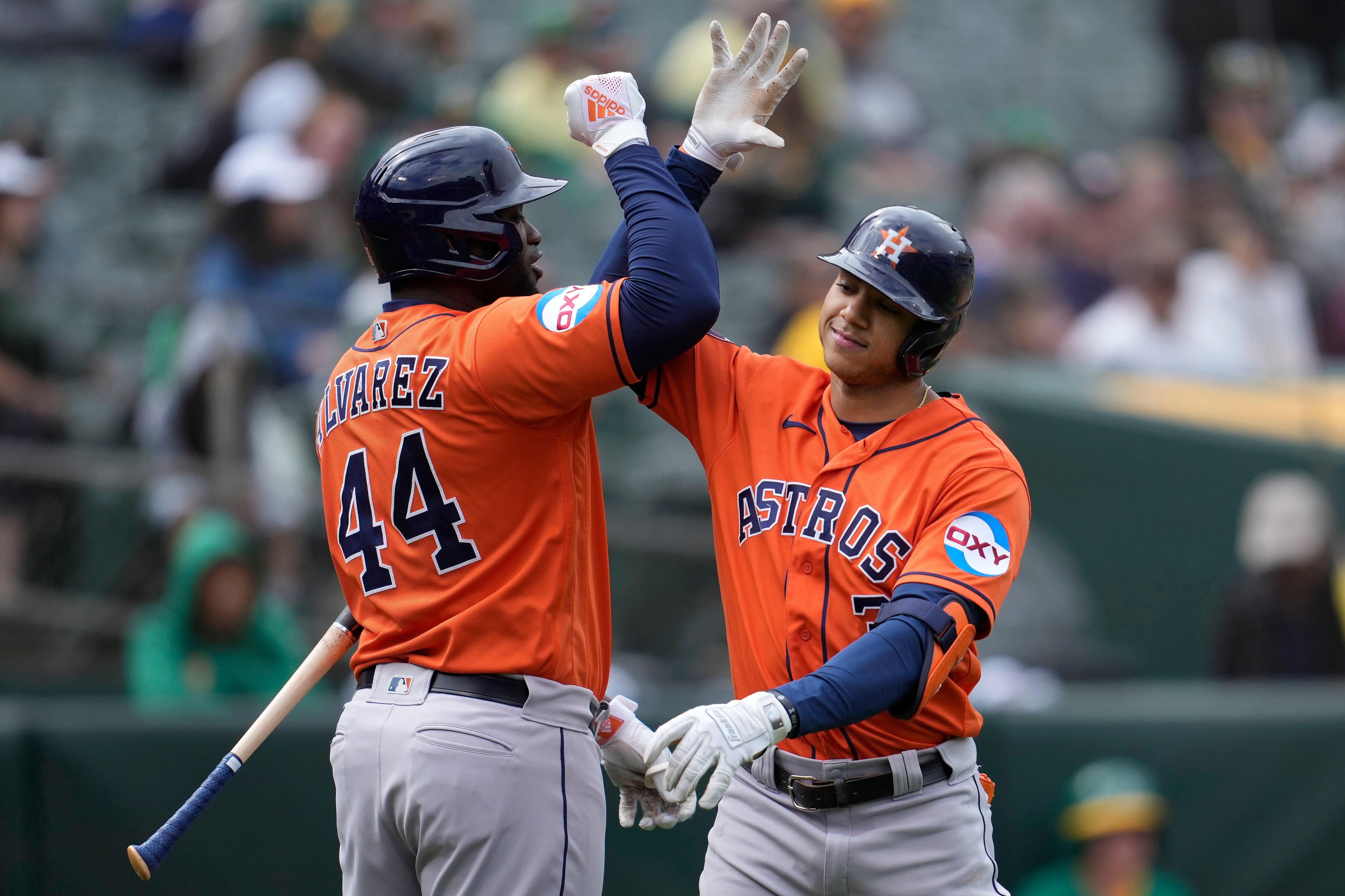 OAKLAND (AP) — El cubano Yordan Álvarez conectó dos de los siete jonrones de Houston y los emergentes Astros aplastaron por 10-1 a los Atléticos el domingo para completar otra barrida en la serie. Oakland suma 11 derrotas consecutivas.