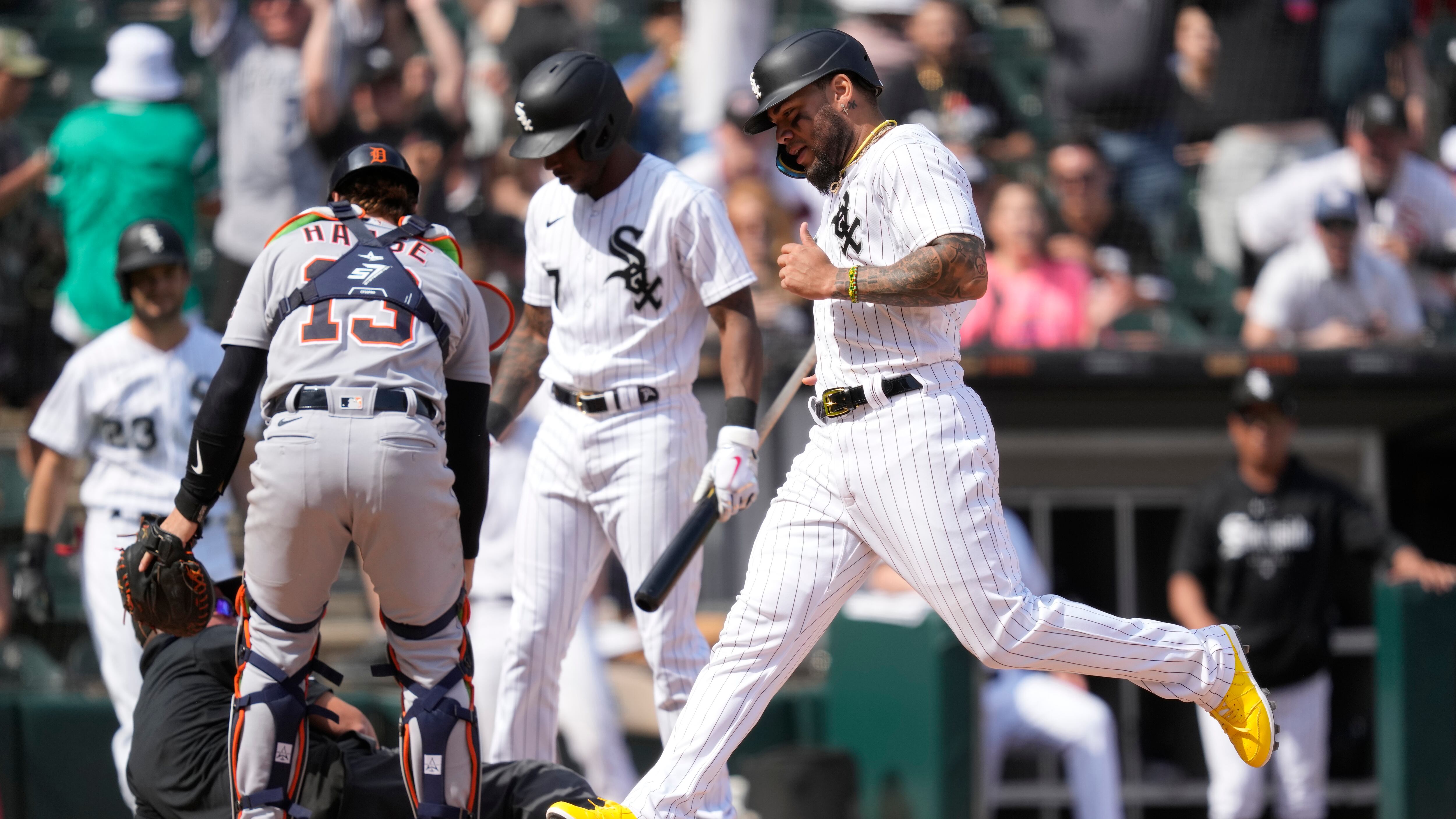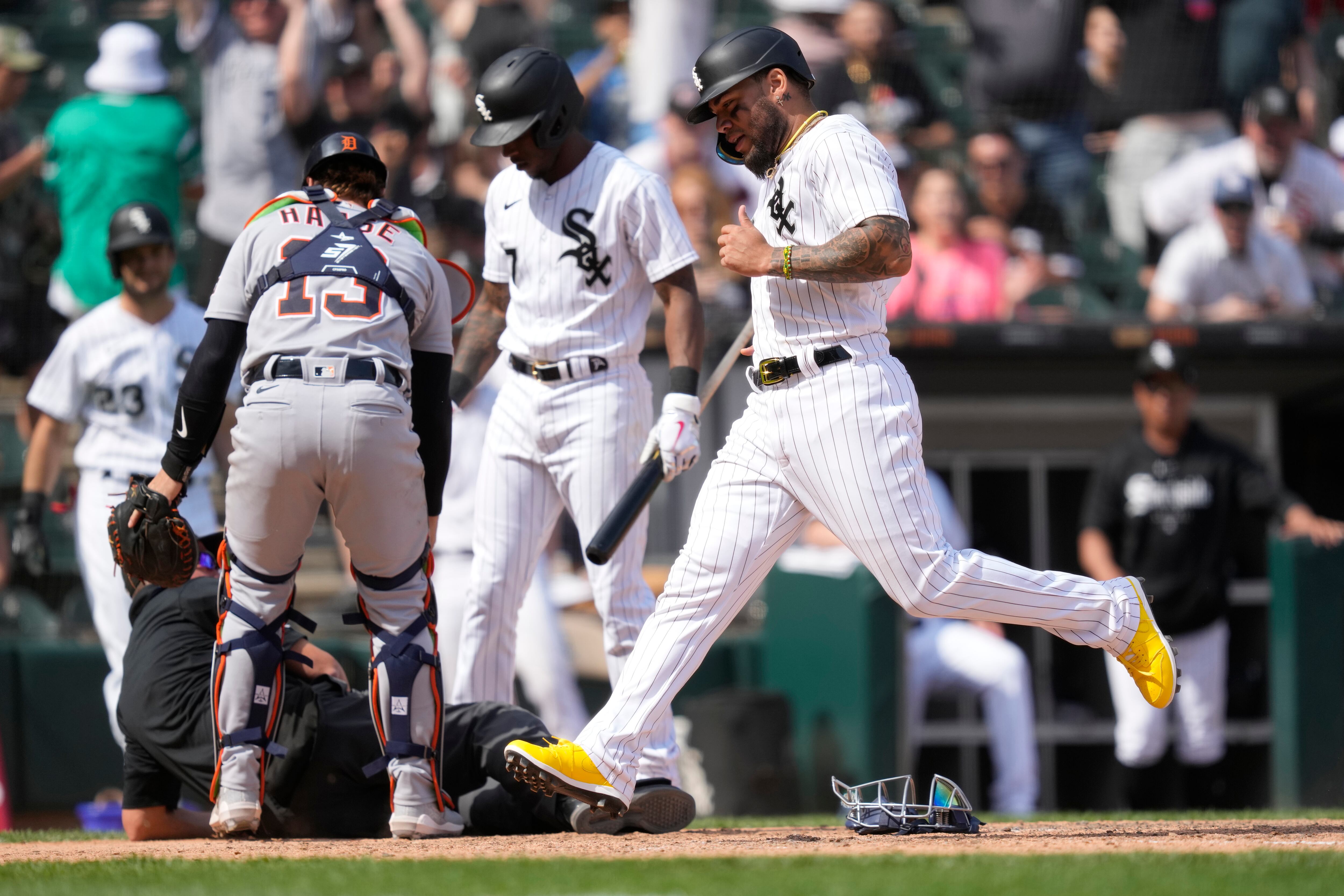 CHICAGO (AP) — El cubano Yoán Monacada salió corriendo hace el plato con un wild pitch en la décima entrada que pareció derribar al umpire Cory Blaser en la victoria 2-1 de los Medias Blancas de Chicago el sábado ante los Tigres de Detroit.