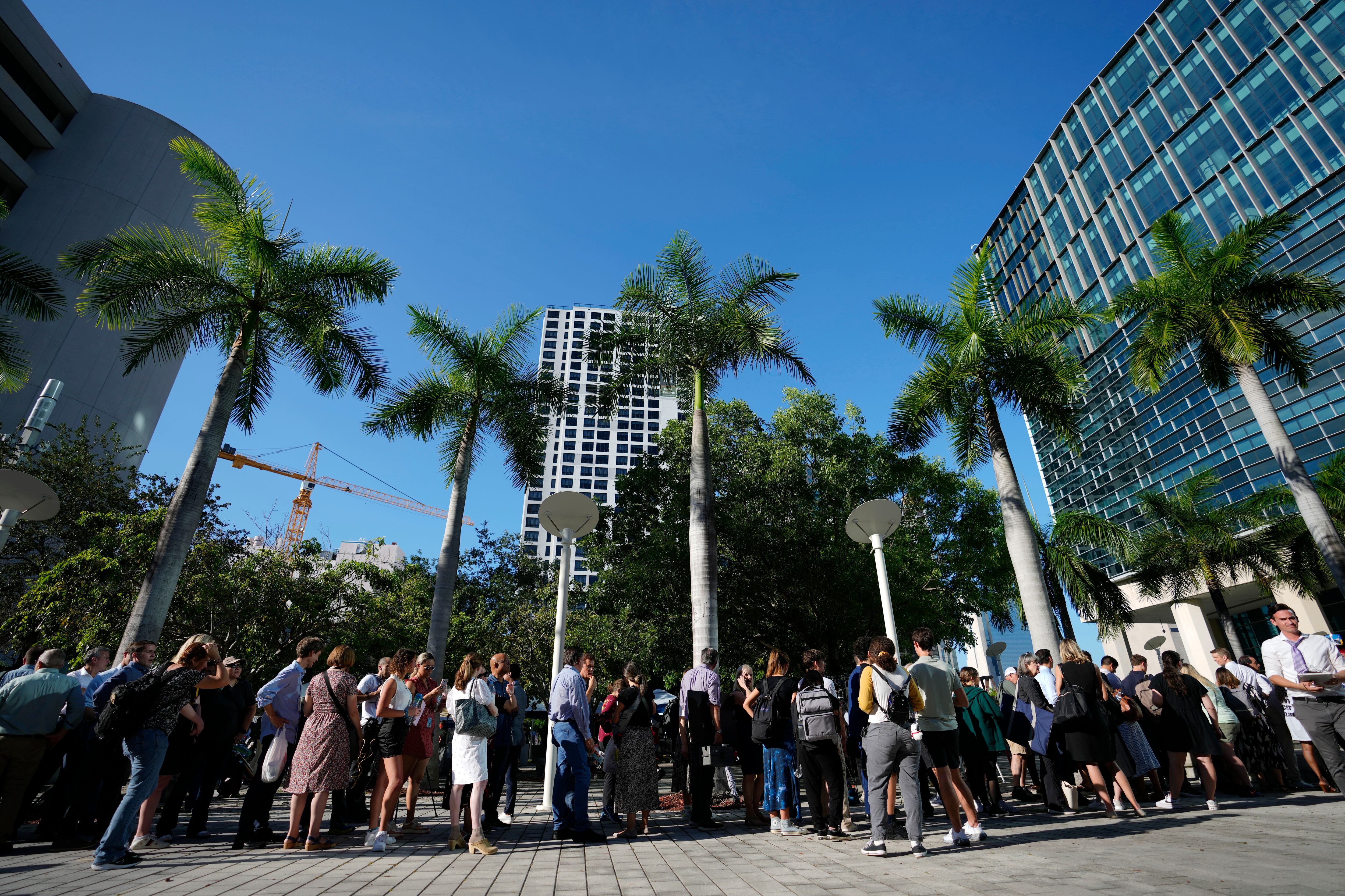 MIAMI (AP) — Cientos de periodistas de distintas partes del mundo se congregaron el martes afuera del tribunal del centro de Miami donde el expresidente Donald Trump tiene previsto hacer su primera comparecencia en relación con los cargos penales de que retuvo indebidamente documentos confidenciales.
