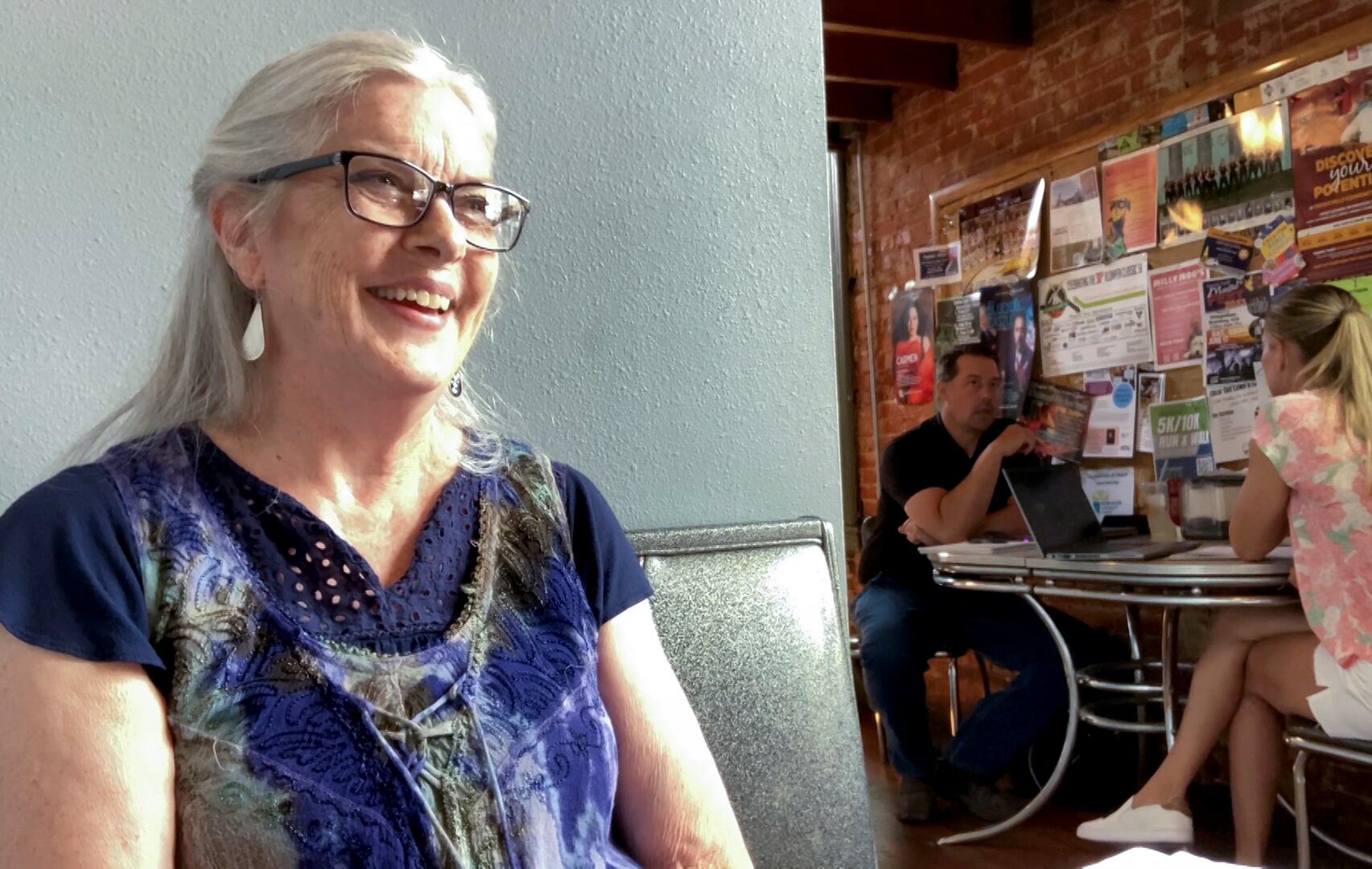 “Me da náuseas que parece haber criterios completamente distintos para un conservador y sobre todo para Donald Trump”, expresa Sue VanEe, agricultora jubilada de 68 años que aguardaba a una persona amiga en el mismo café donde Evenhouse estaba escribiendo. “Completamente distintos. Lo contrario”.