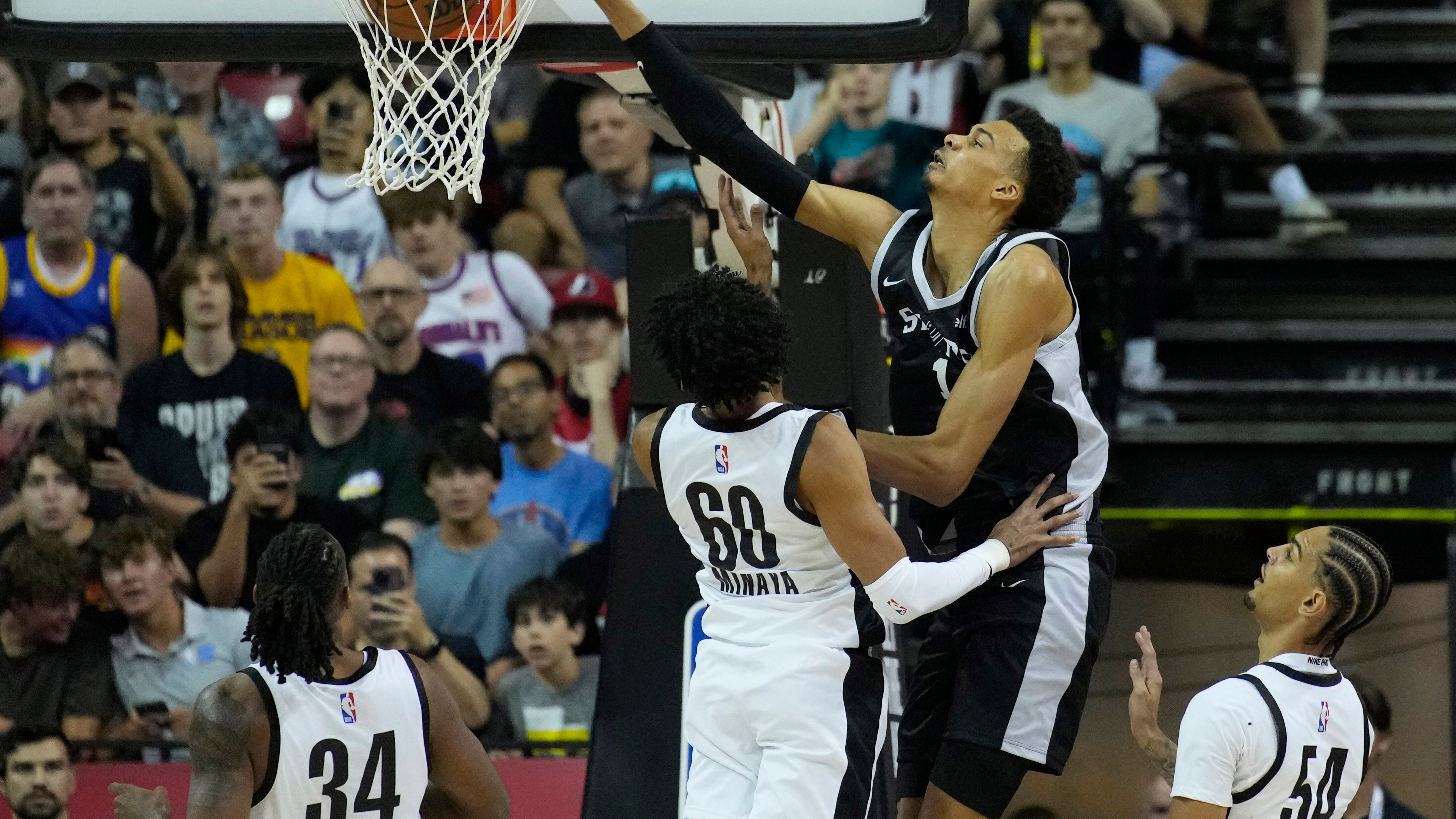 La primera selección de este año en el draft de la NBA lució mucho más como él mismo en su segundo partido en la Liga de Verano el domingo. Terminó con 27 puntos y 12 rebotes, pero los Spurs perdieron 85-80 ante los Trail Blazers de Portland.