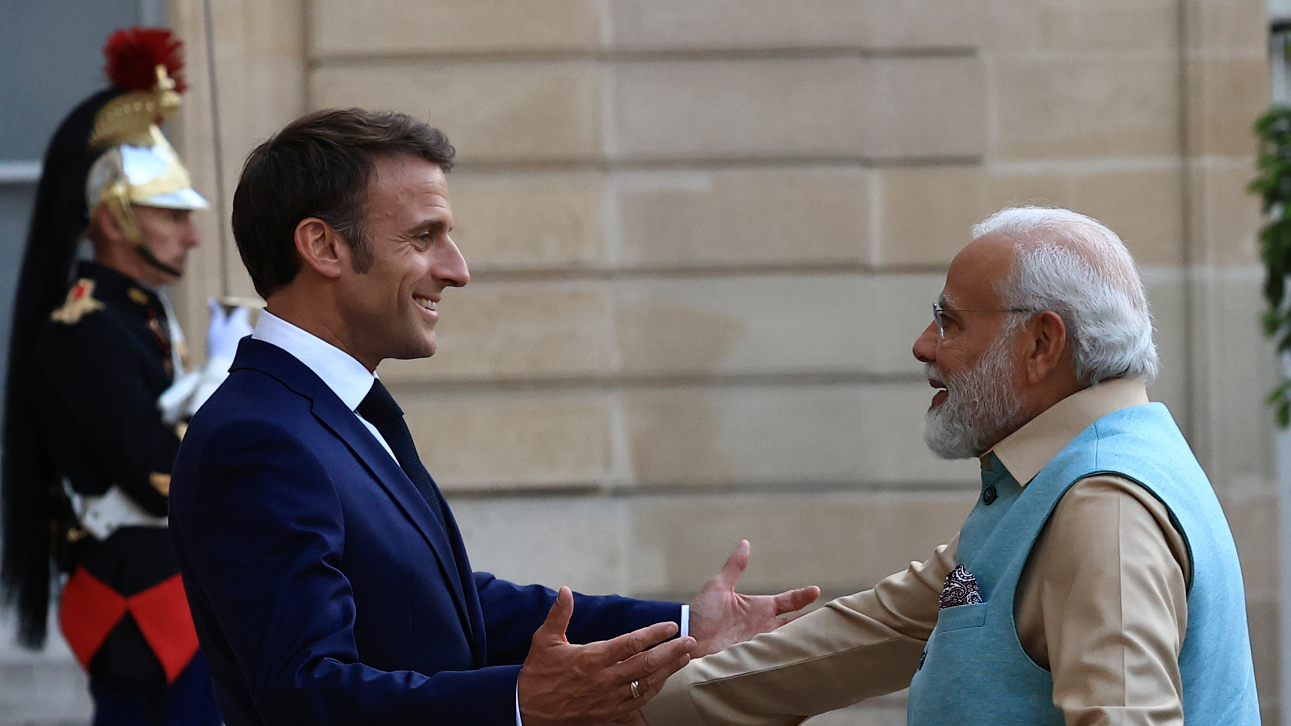 Macron, con Modi a su lado, presidirá el viernes el desfile militar anual para conmemorar el día nacional de Francia. Participarán soldados indios y tres cazas Rafale de fabricación francesa que pertenecen a la India harán un sobrevuelo.