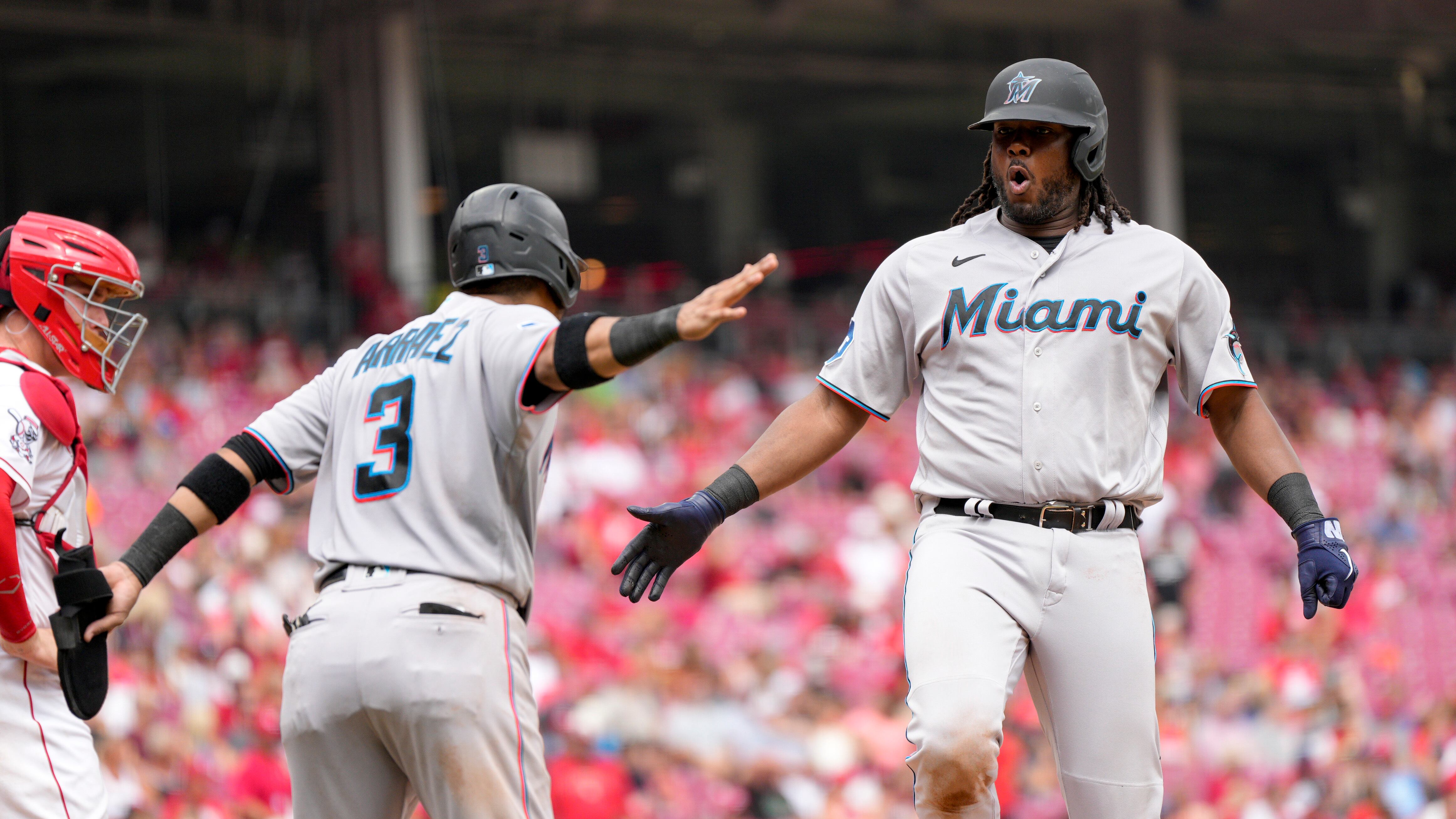Con jonrones de Bell y De La Cruz, Marlins remontan para vencer 5-4 a Rojos