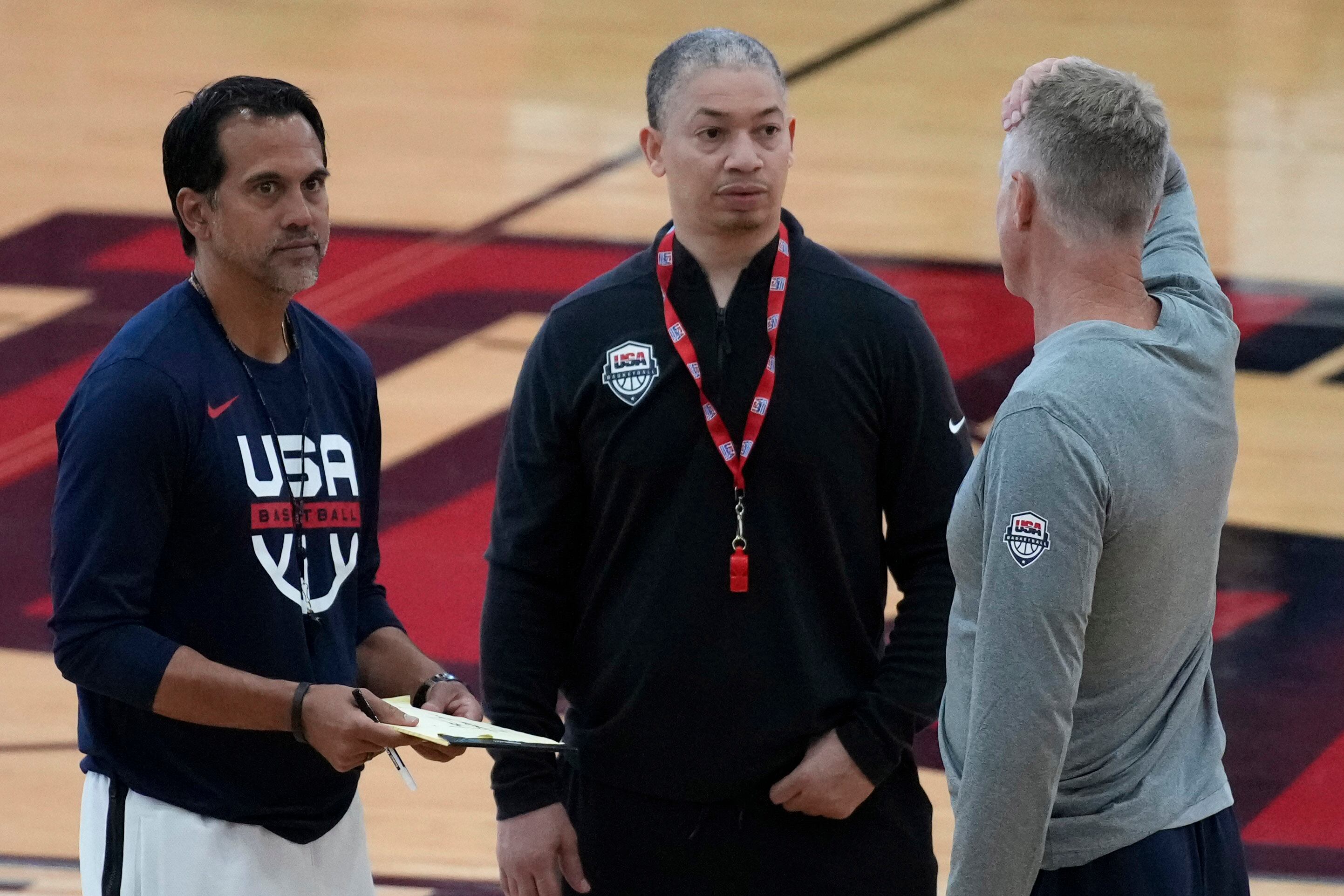 El entrenador de Golden State Steve Kerr dirigirá al equipo, Erik Spoelstra de Miami y Mark Few de Gonzaga estarán a su lado como asistentes al igual que Lue. También cuentan con el exentrenador de la NBA Jeff Van Gundy como visor y Jamahl Mosley de Orlando estuvo involucrado al inicio del campamento de entrenamiento en Lasa Vegas como entrenador del selecto grupo elegido para enfrentar a la selección en una práctica.