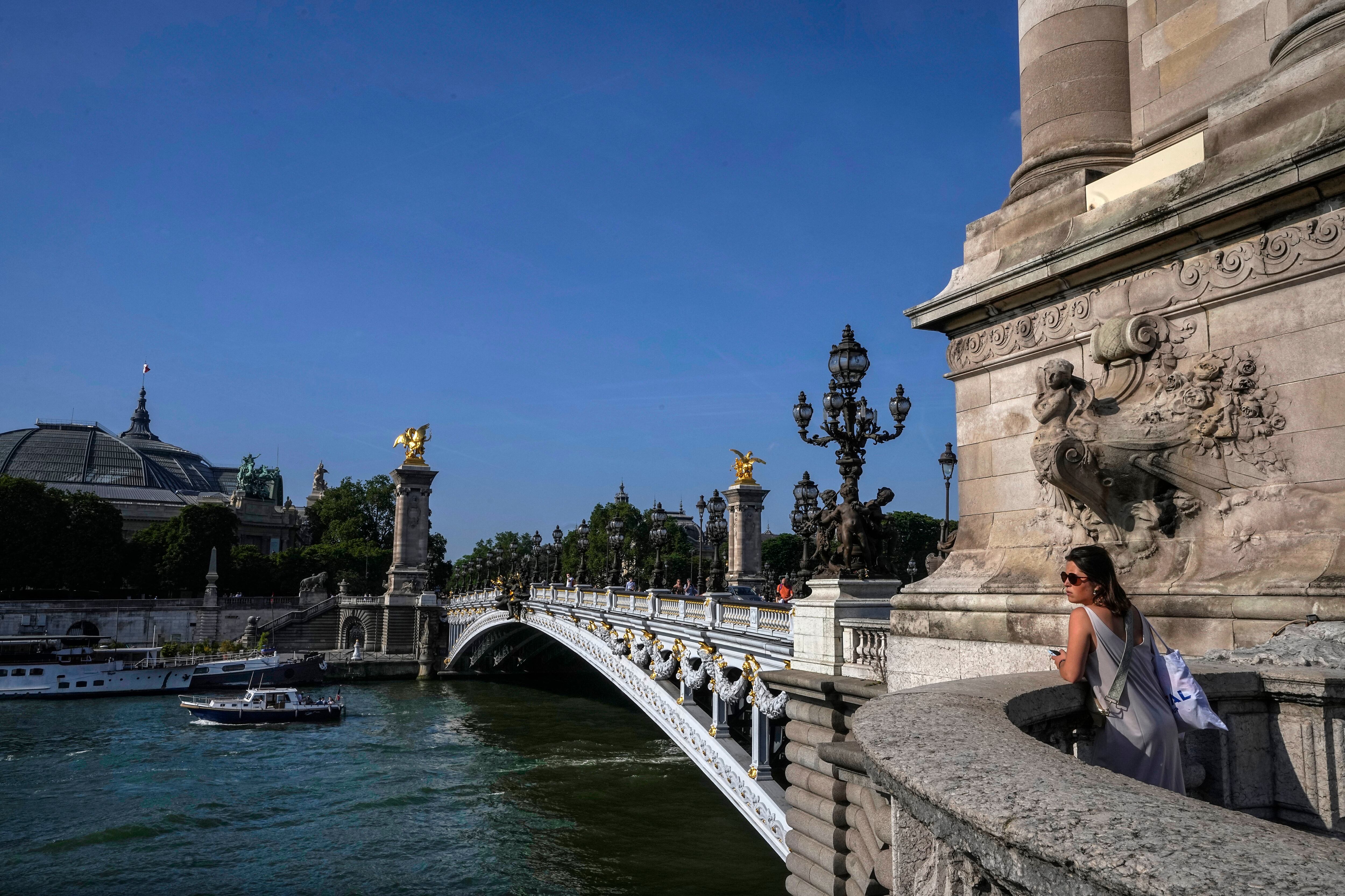 Una mujer descansa en el puente Alexandre III sobre el río Sena de París, el jueves 1 de junio de 2023. (AP Foto/Michel Euler) AP (Michel Euler/AP)