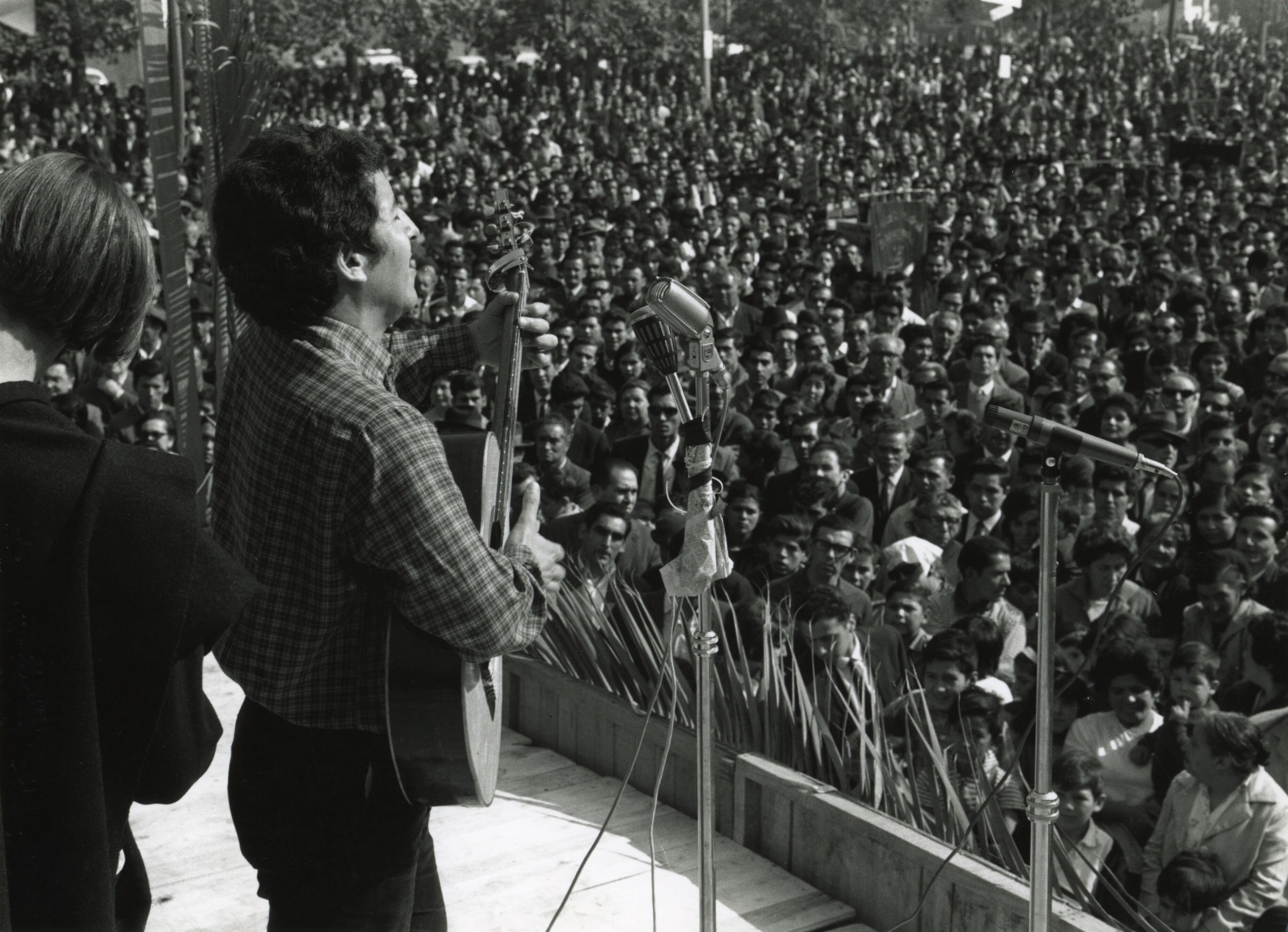Archivo - Víctor Jara junto a los Quilapayún cantando en conmemoración del 1° Mayo. Patricio Guzmán/Fundación Víctor Jara. AYUNTAMIENTO CARTAGENA - Archivo