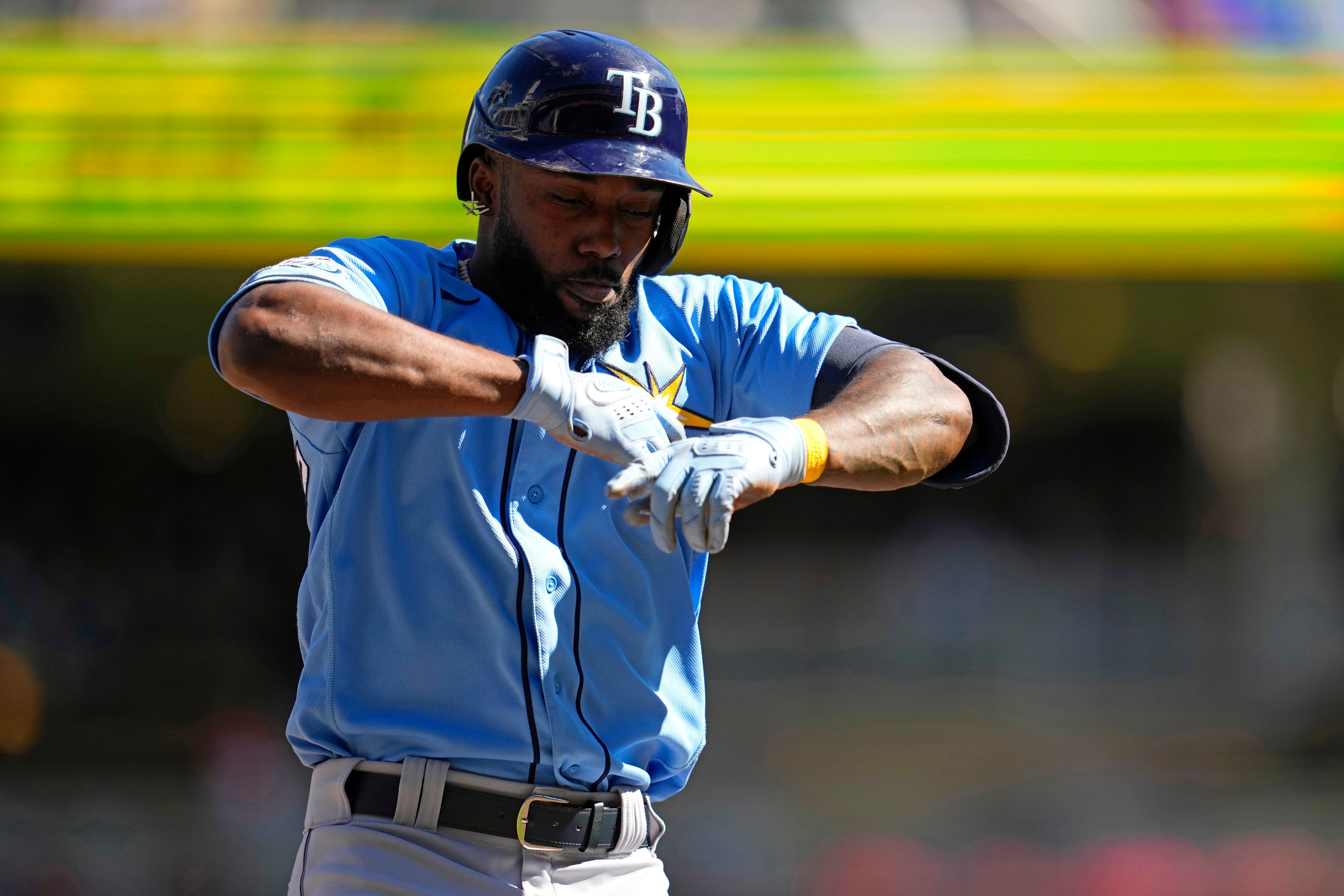 El cubano Yandy Díaz, quien tuvo que salir del juego del martes por un golpe en los testículos, conectó un doble de dos carreras en el segundo episodio.