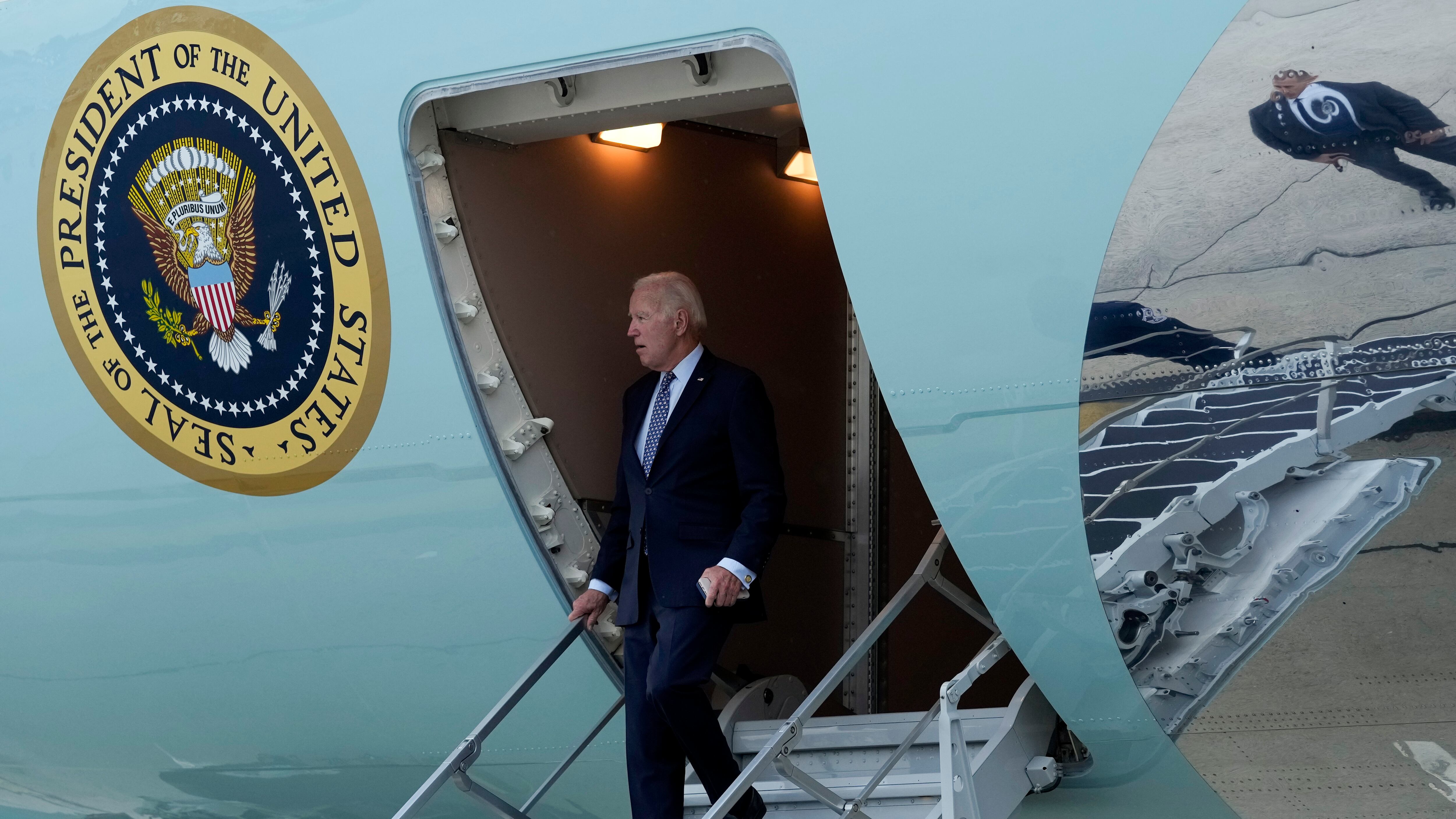 El presidente Joe Biden baja las escaleras del Air Force One en el Aeropuerto Internacional John F. Kennedy en Nueva York, el 17 de septiembre de 2023. (Foto AP/Susan Walsh, Archivo) AP (Susan Walsh/AP)