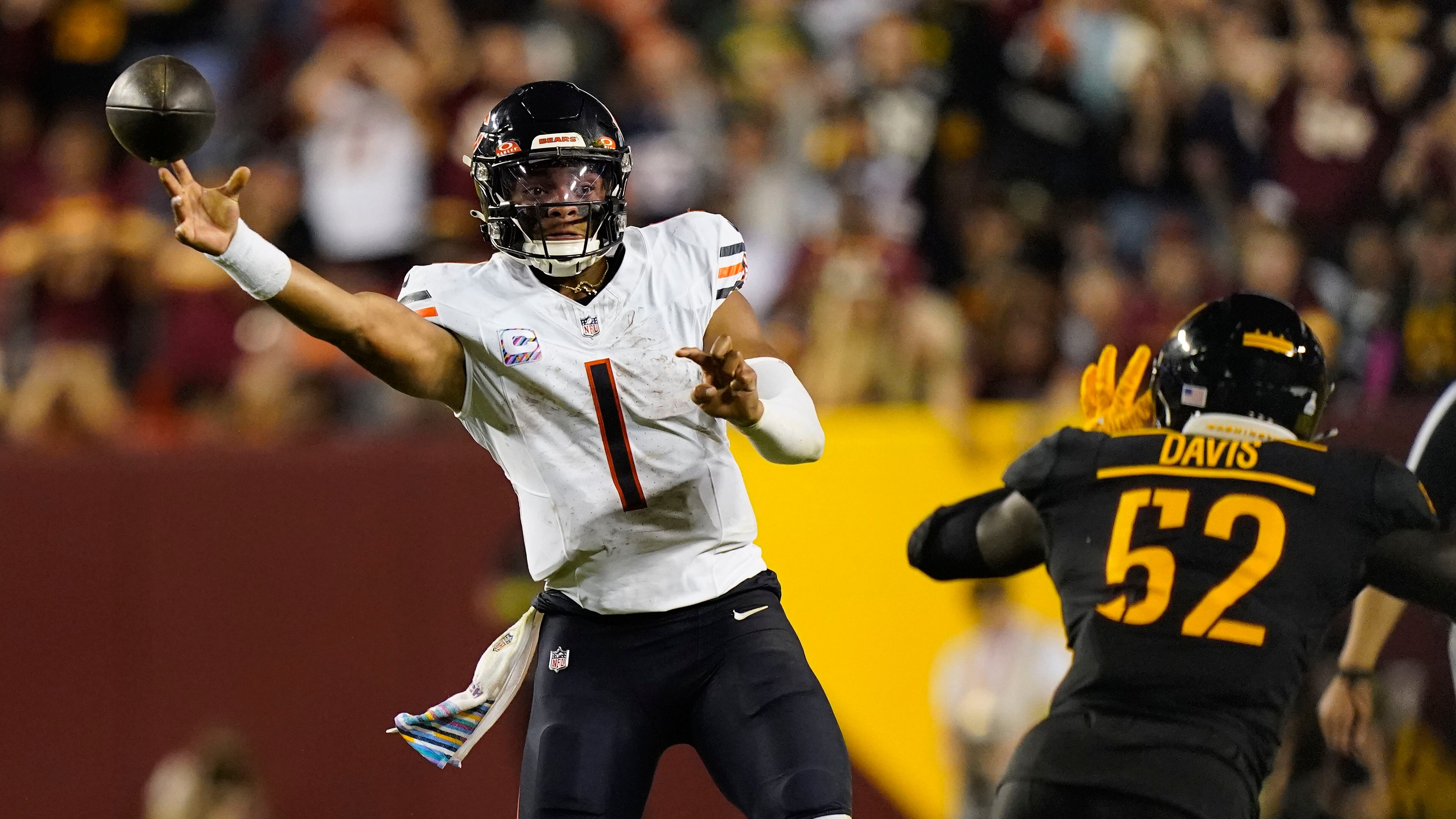 Todo eso quedó atrás durante este duelo. Fields completó cuatro pases de touchdown para igualar la mayor marca de su carrera, establecida la semana anterior. Esta vez, sus números redituaron un triunfo, y Chicago (1-4) se olvidó temporalmente de todos sus problemas dentro y fuera del terreno.