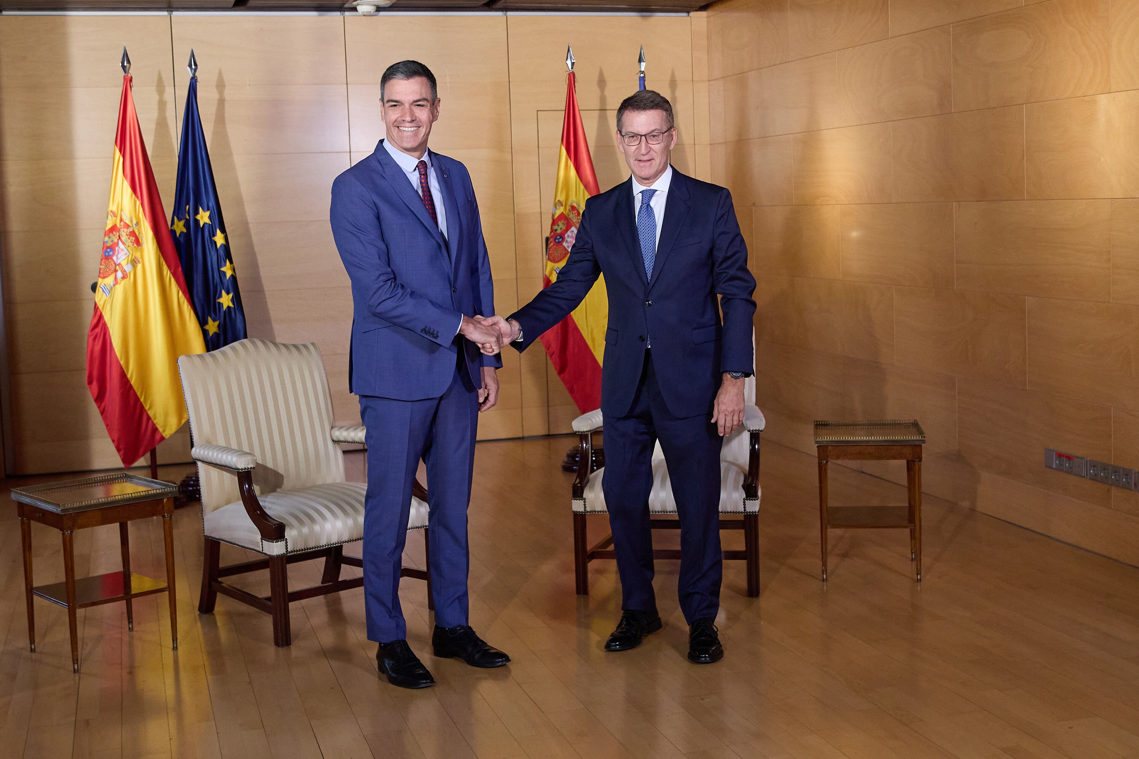 Ambos ya mantuvieron una entrevista en el mismo sitio el pasado 30 de agosto, después de que el Rey hubiera propuesto candidato a Feijóo. El presidente del PP le planteó entonces un acuerdo para una legislatura de dos años basada en seis pactos de Estado, una oferta que rechazó el líder socialista.