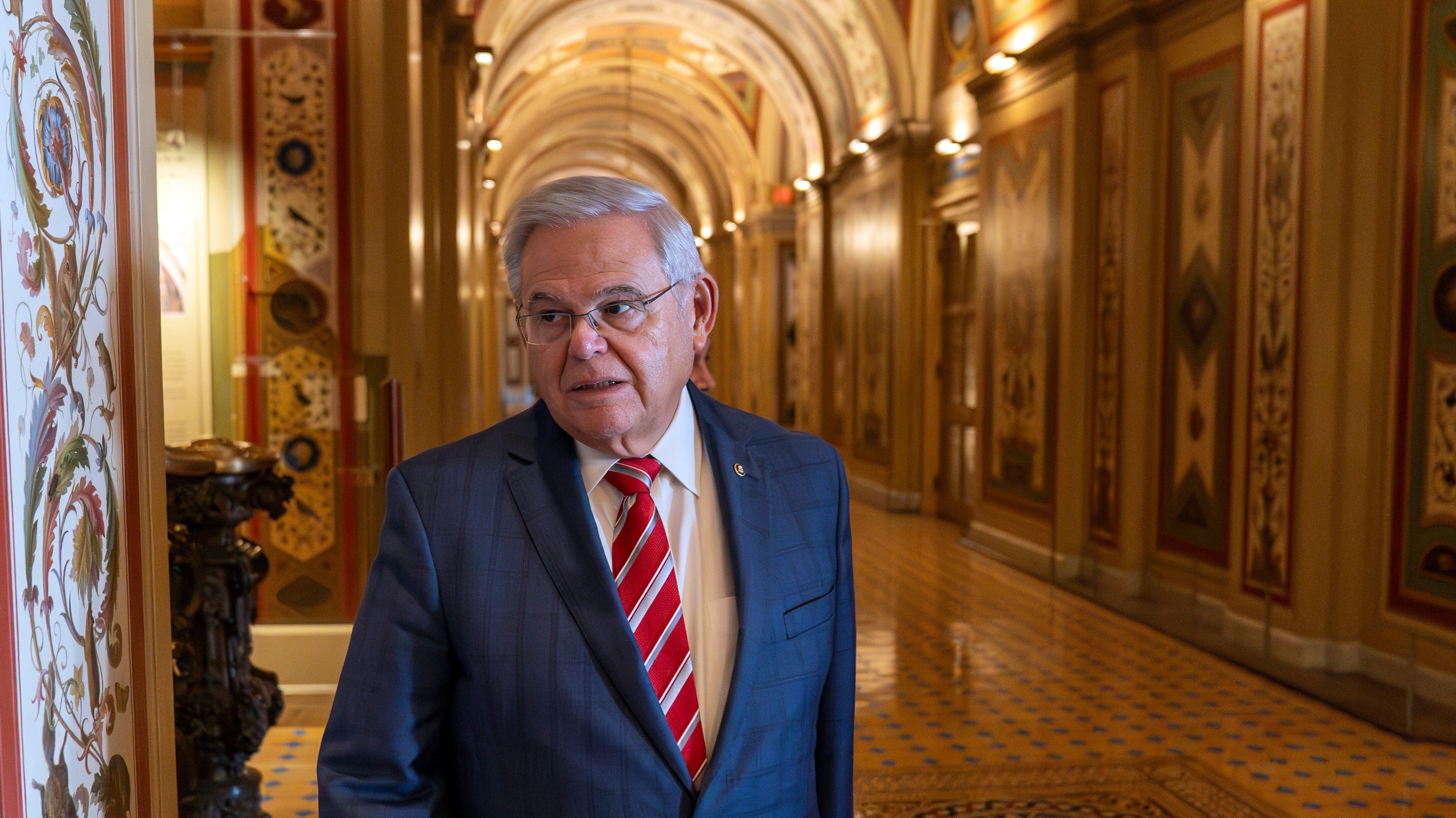 El senador Bob Menendez, demócrata por Nueva Jersey, abandona la sala del Senado en el Capitolio, el jueves 28 de septiembre de 2023, en Washington. (Foto AP/Alex Brandon) AP (Alex Brandon/AP)