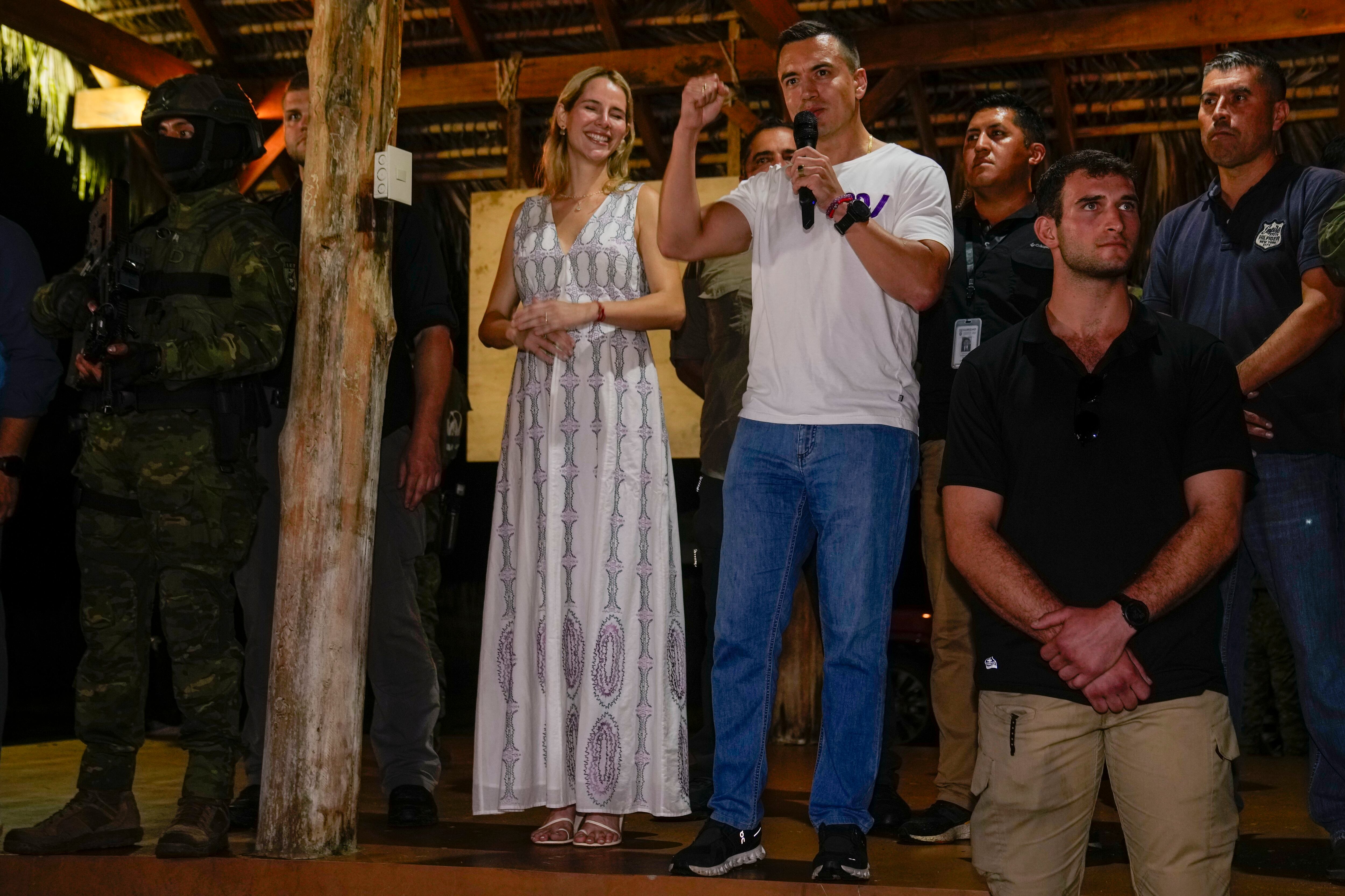 Tras conocer su triunfo en el balotaje, en una corta aparición pública Noboa aseveró que “empezamos a trabajar por ese nuevo Ecuador”, a reconstruir un país que ha sido gravemente golpeado “por la violencia por la corrupción y por el odio. Desde mañana empieza a trabajar la esperanza".