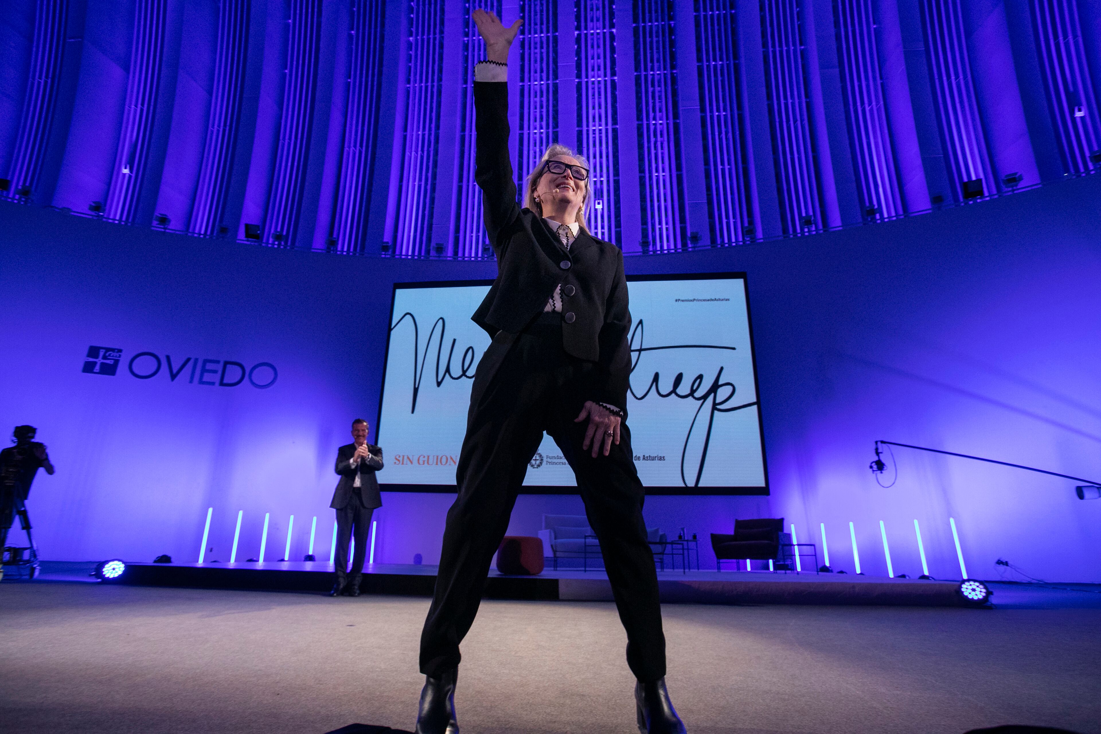 La actriz Meryl Streep participa en el acto ‘Sin guion. Encuentro con el público’, en el Palacio de Congresos de Oviedo, a 18 de octubre de 2023, en Oviedo, Asturias (España). Durante este evento, Meryl Streep conversa con Antonio Banderas sobre la Jorge Peteiro - Europa Press (JORGE PETEIRO)