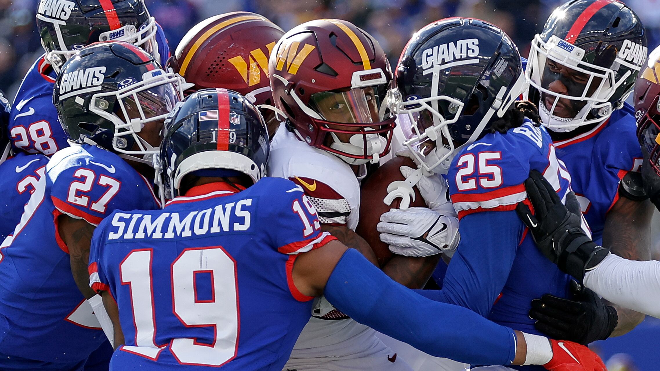 Los Giants necesitaban detener un avance adicional luego que Saquon Barkley perdiera el balón dentro de la yarda 5 de los Commanders. Sam Howell llevó a Washington hasta la yarda 12 de Nueva York, pero en cuarta oportunidad y 5 desde la yarda 7, su pase quedó un poquito retrasado hacia Jahan Dotson que no pudo hacer la recepción.