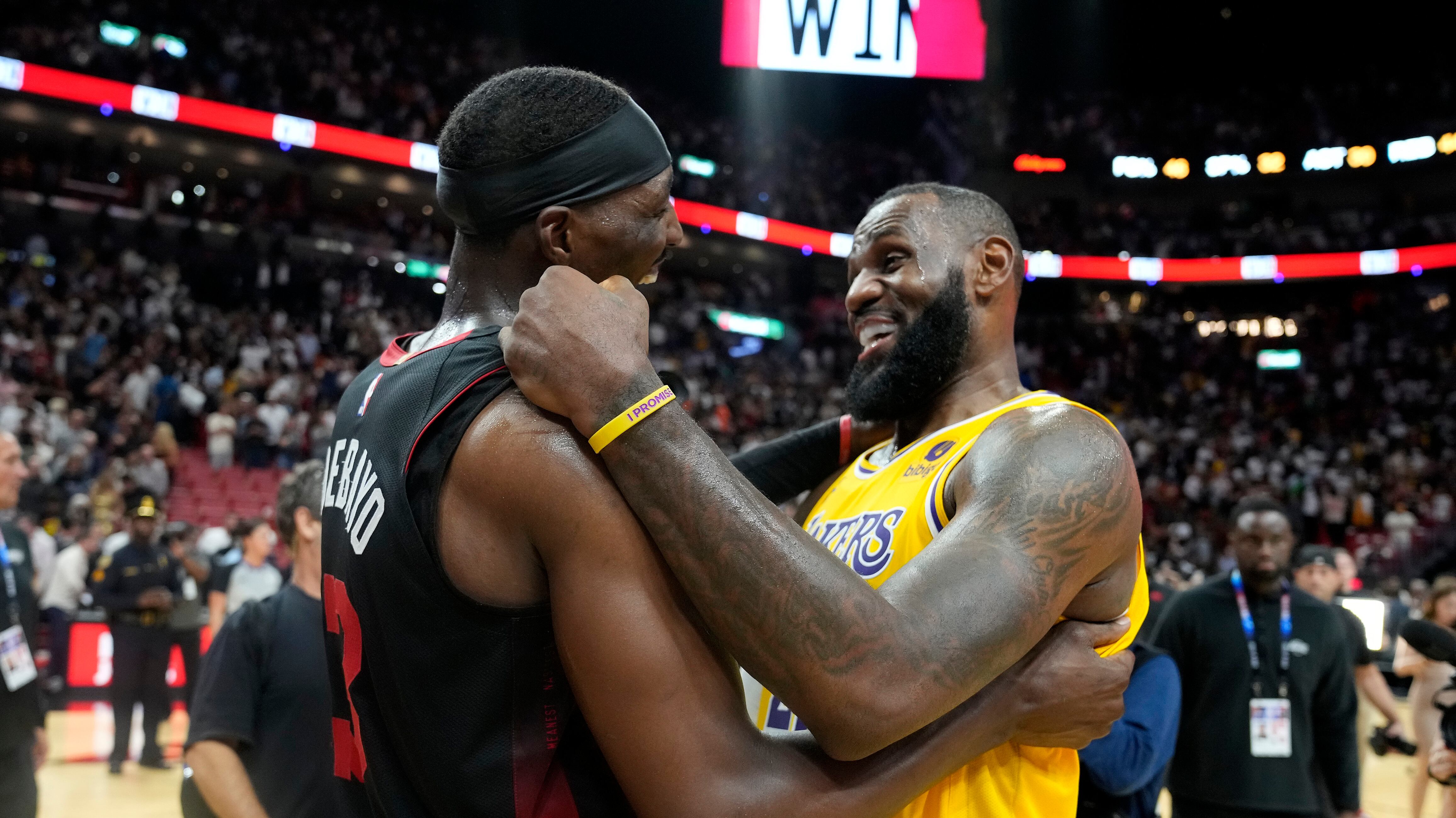 Adebayo fue sancionado por una viola con 8,9 segundos por jugar, dando a los Lakers una última oportunidad. El pase dentro del campo fue para James, quien se dirigió hacia la derecha, atrajo a los defensores y encontró a un Cam Reddish completamente abierto para lo que habría sido un tiro en salto de esquina ganador del juego, que rebotó en el aro y Butler aseguró el rebote.