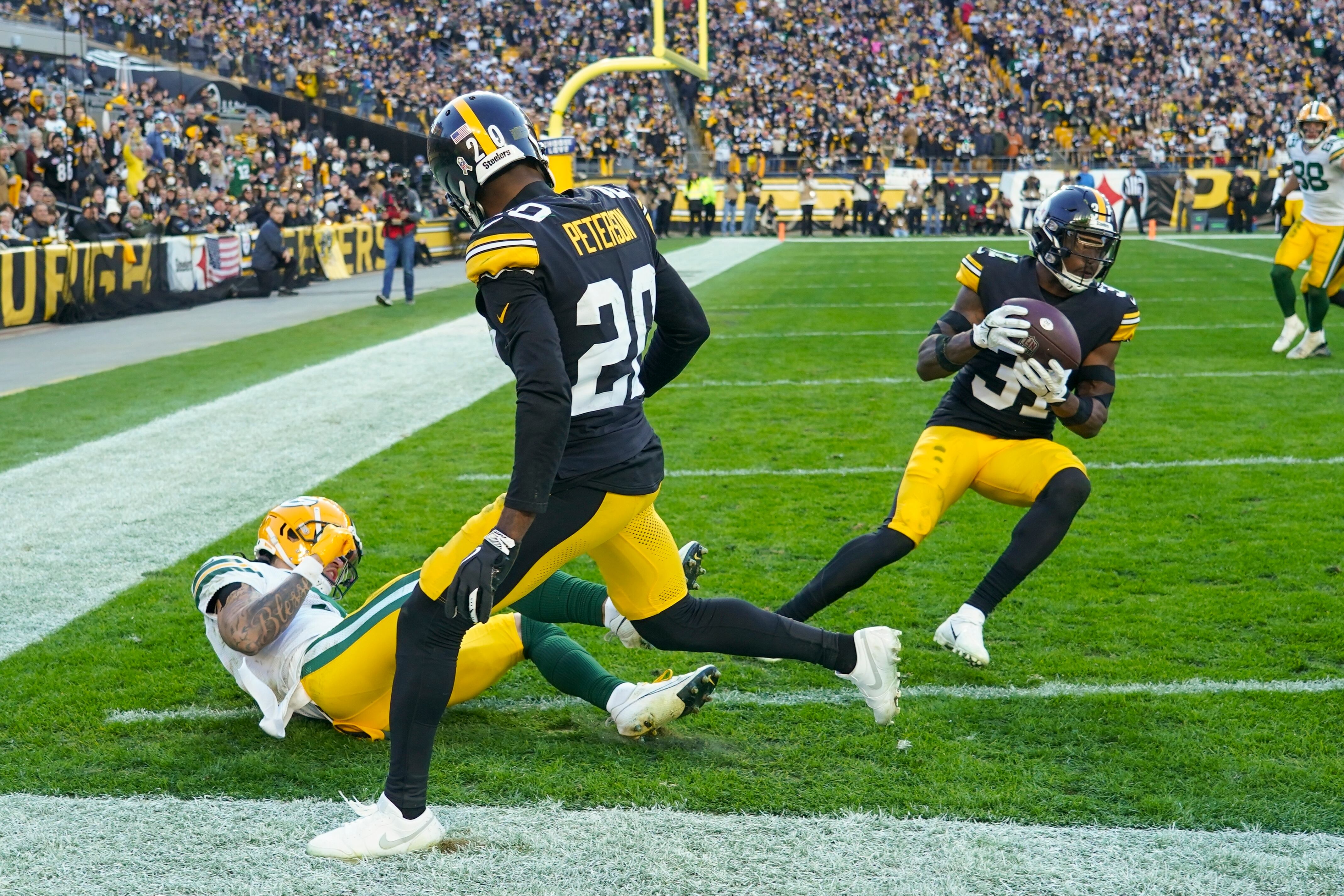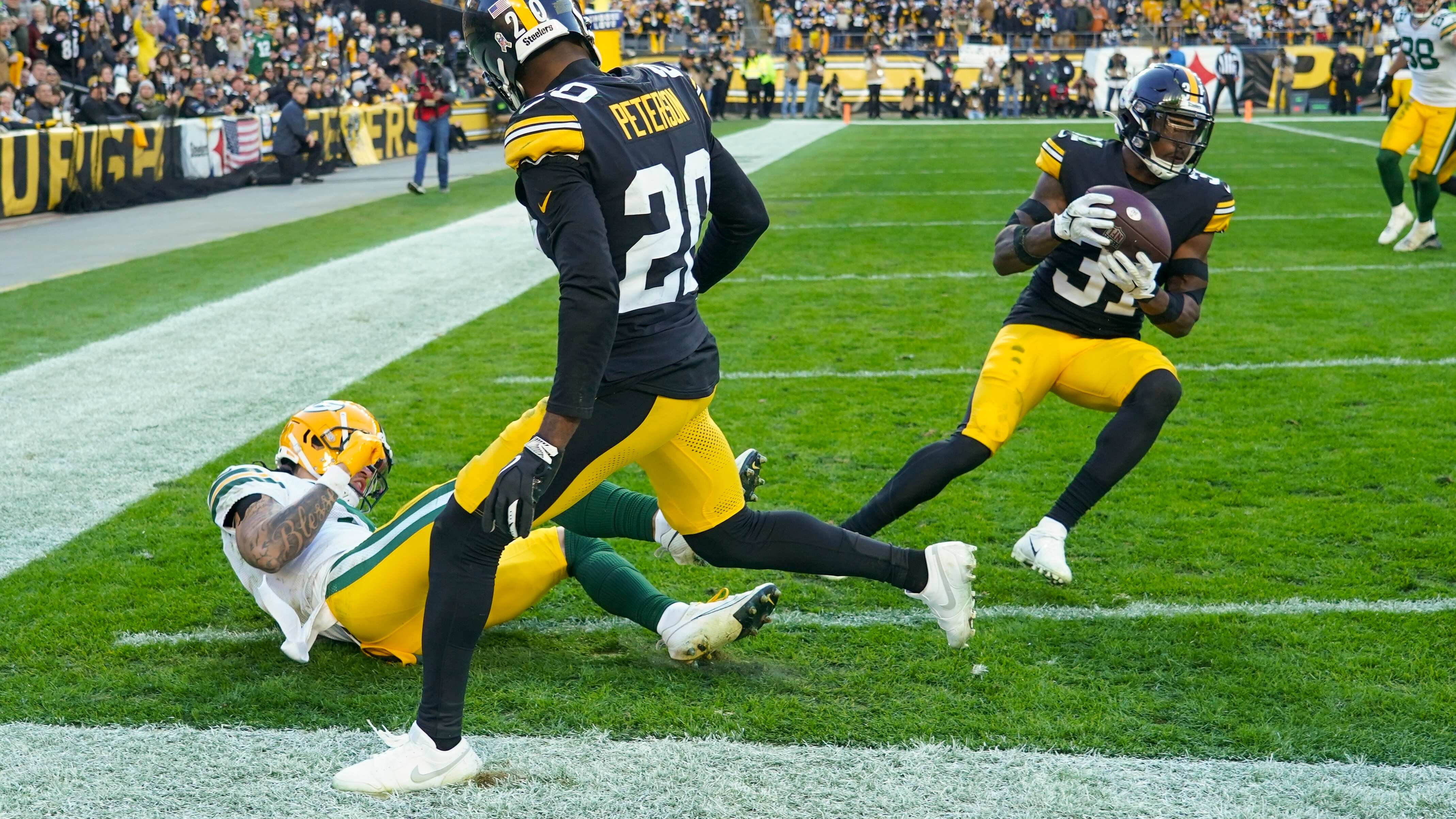 Patrick Peterson bloqueó un punto extra y desvió un balón que se convirtió en una intercepción de Keanu Neal en la zona de anotación con 3:20 por jugar. Green Bay volvió a tener el balón con 59 segundos por jugar y se metió profundo en el territorio de Pittsburgh, pero el último intento de Jordan Love de lanzar un pase de anotación terminó en las manos de Damontae Kazee.