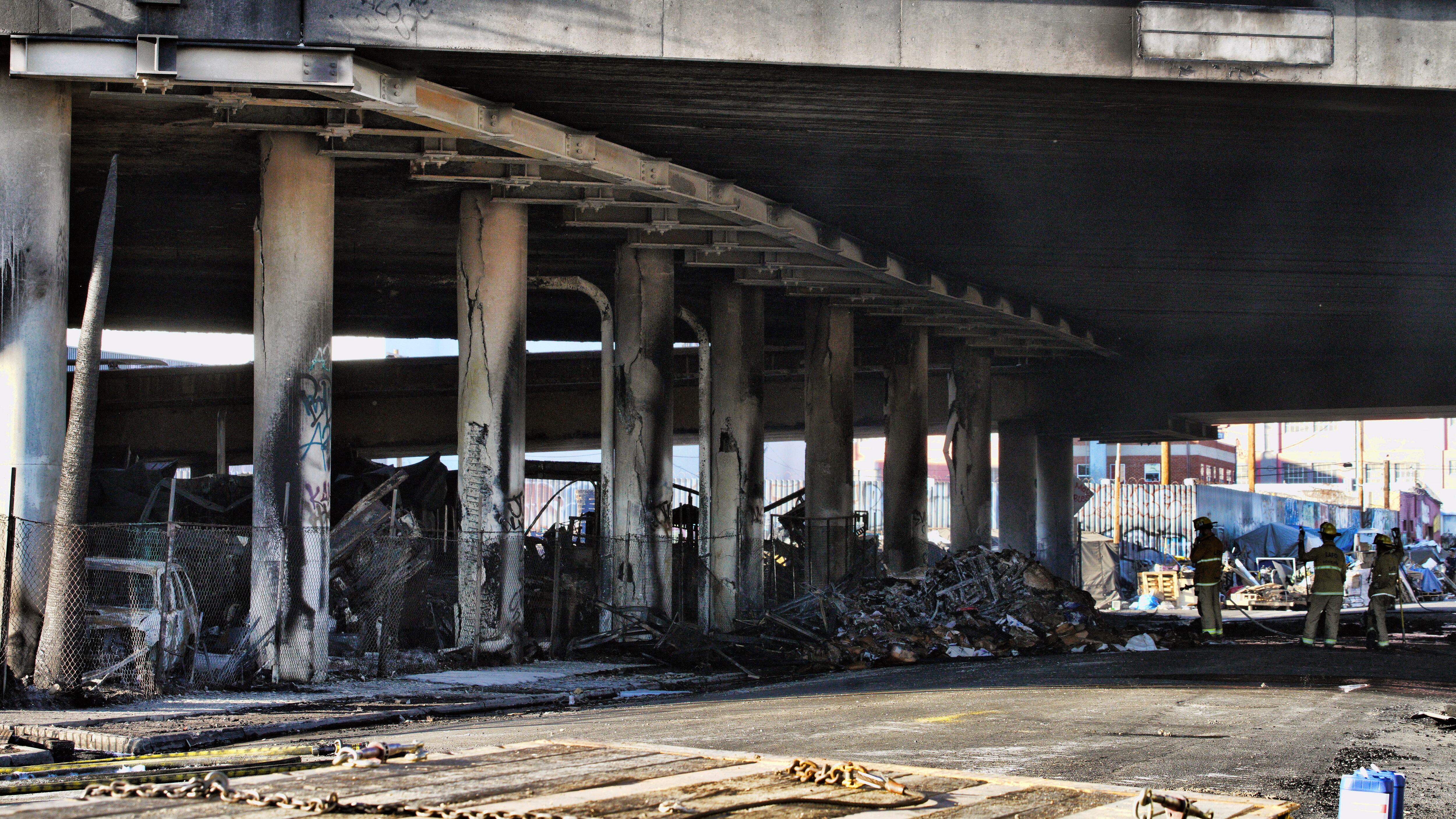 Destacó que tampoco existe alguna razón para asumir que el fuego fue provocado por indigentes que viven bajo esa sección de la autopista.